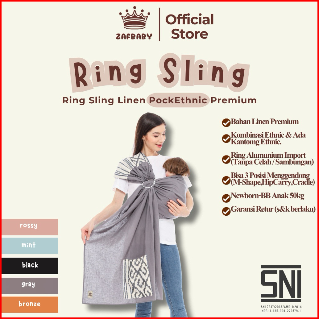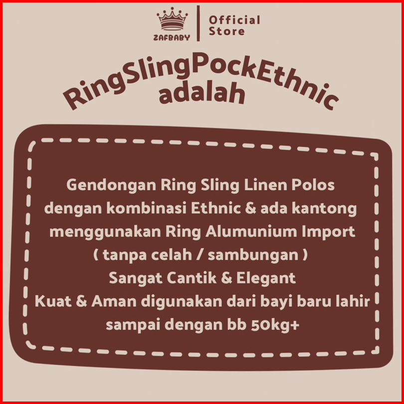 Zafbaby Gendongan Bayi Ring Sling Linen Pockethnic Premium
