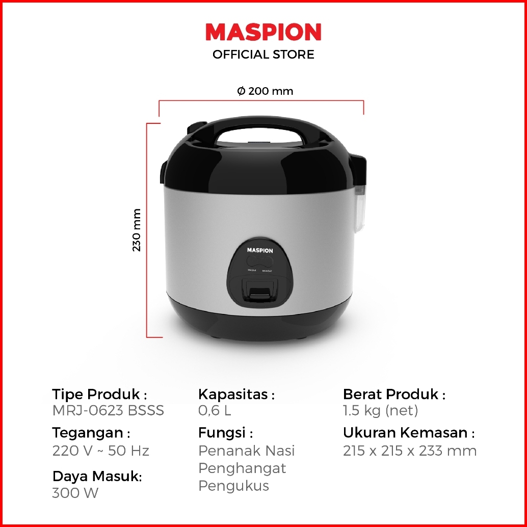 Maspion Rice Cooker Magic Com 0.6 Liter Mrj-0623 Bsss