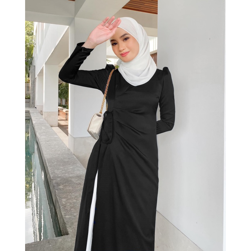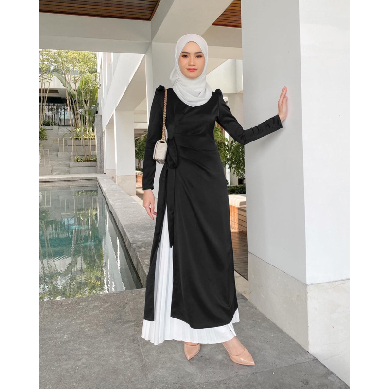 BAJU MUSLIM WANITA DEWASA / TUNIK MIDI WRAP DRESS CALIANA LEBARAN BY NURAALABEL BUSUI FRIENDLY