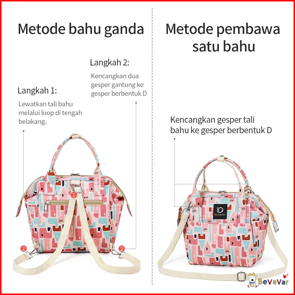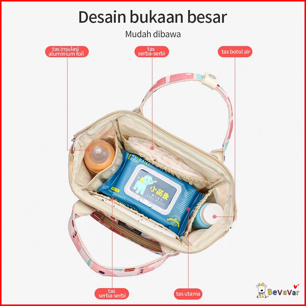 Bevavar Multifungsi Diaper Bag Bayi Tas Perlengkapan Bayi Waterproof