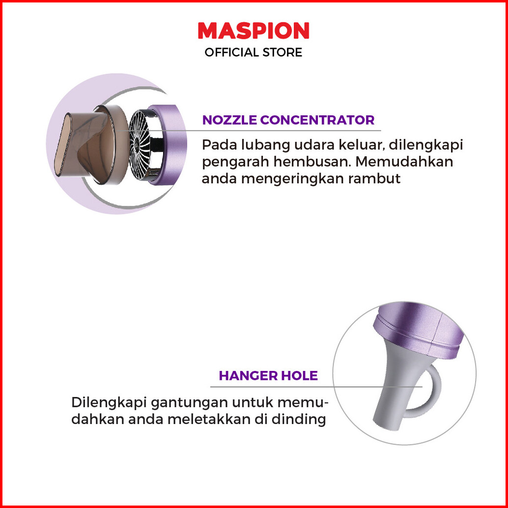 Maspion Hair Dryer Pengering Rambut Kecepatan Tinggi Mhd-688 K