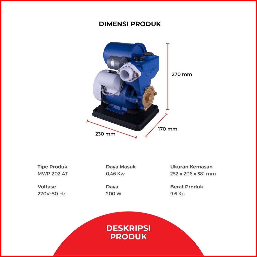 Maspion Water Pump Mesin Pompa Air Otomatis Mwp-202 At