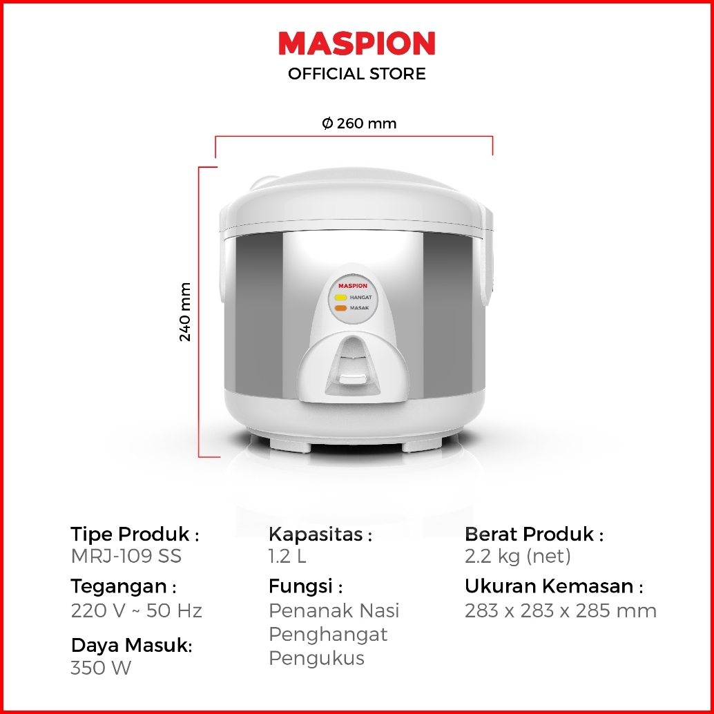 Maspion Rice Cooker Magic Com 1.2 Liter Mrj-109 Ss