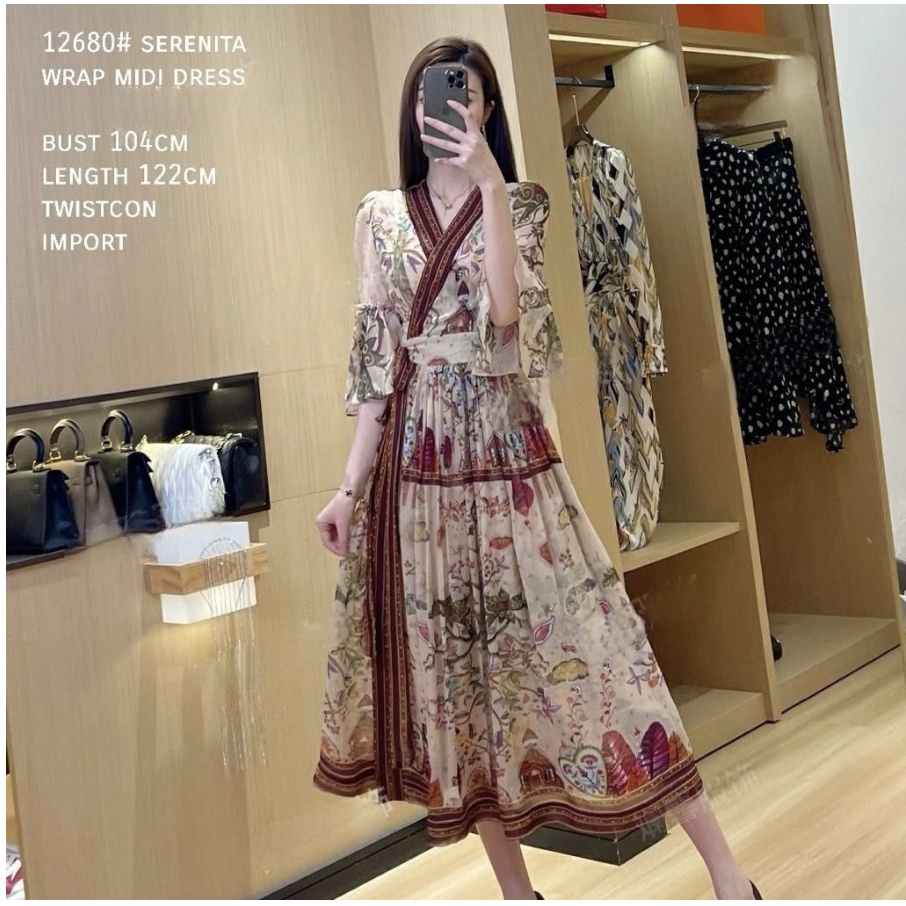 BAJU MUSLIM WANITA DEWASA / BUSANA MUSLIM / PAKAIAN MUSLIM TREND 2025 / SERENITA WRAP MIDI DRESS IMPORT 12680 3M