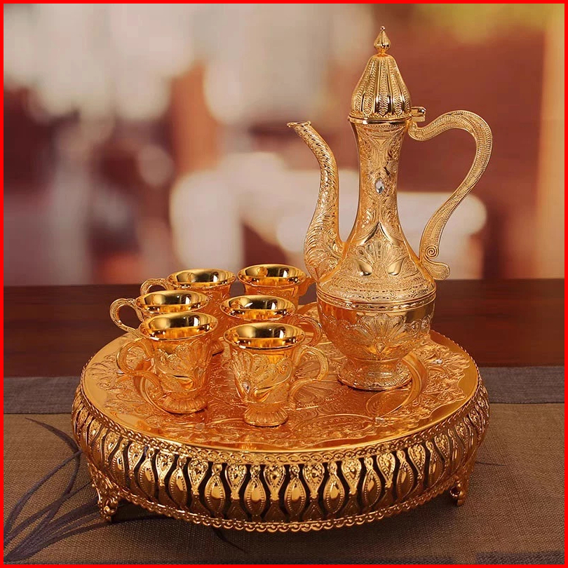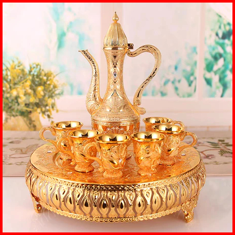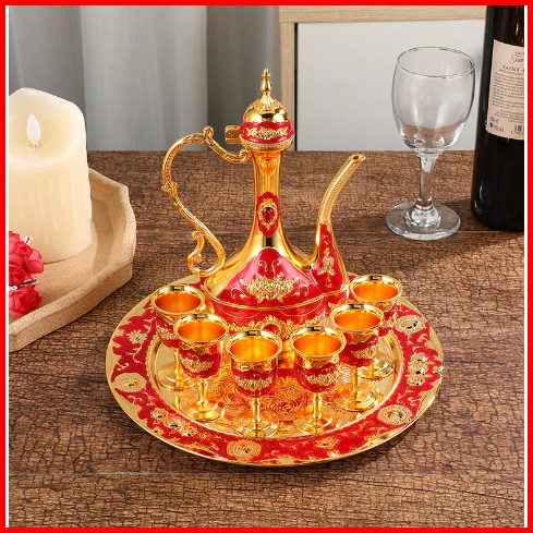Ornament Set 8pcs Set Gelas Anggur Antik Teko Arab Aladin Kendi Gelas Anggur