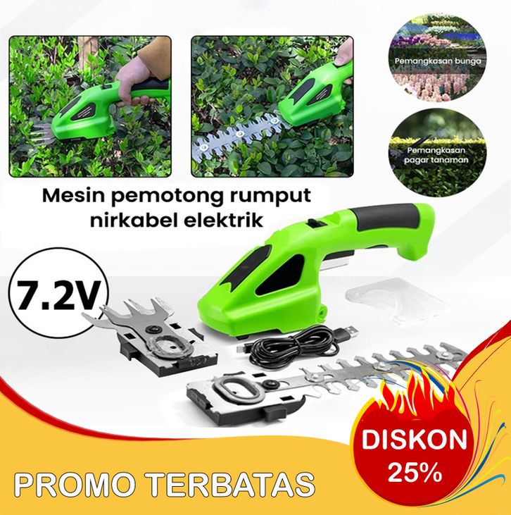 Pemangkas rumput dan semak tanpa kabel 7.2V, pemangkas pagar 2-in-1 yang dapat diisi ulang, alat pemangkas rumput rumah