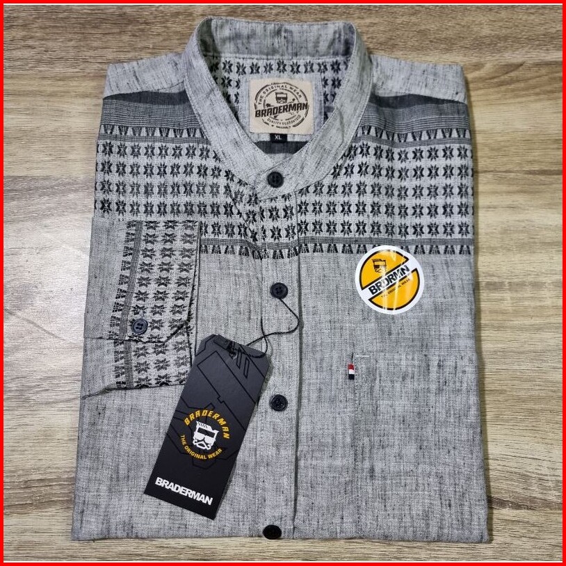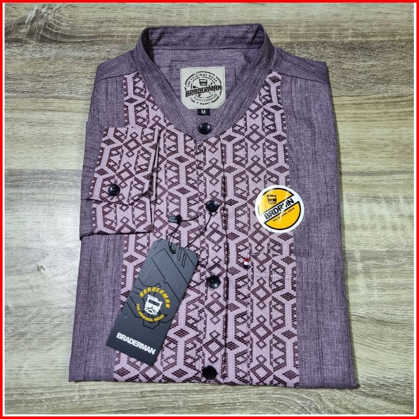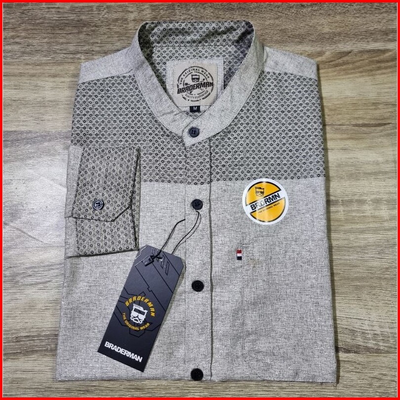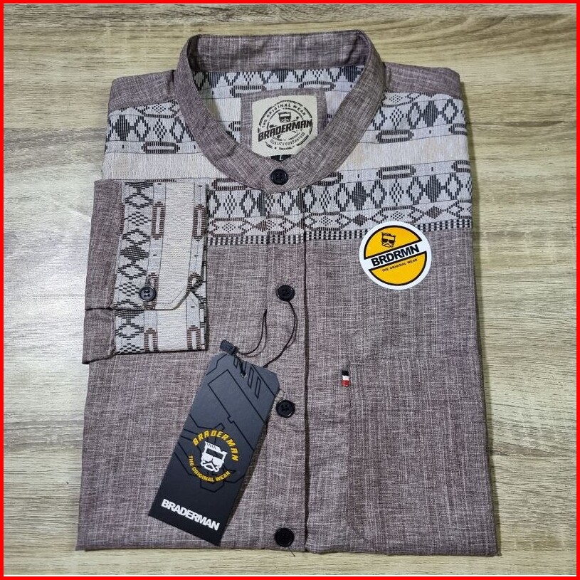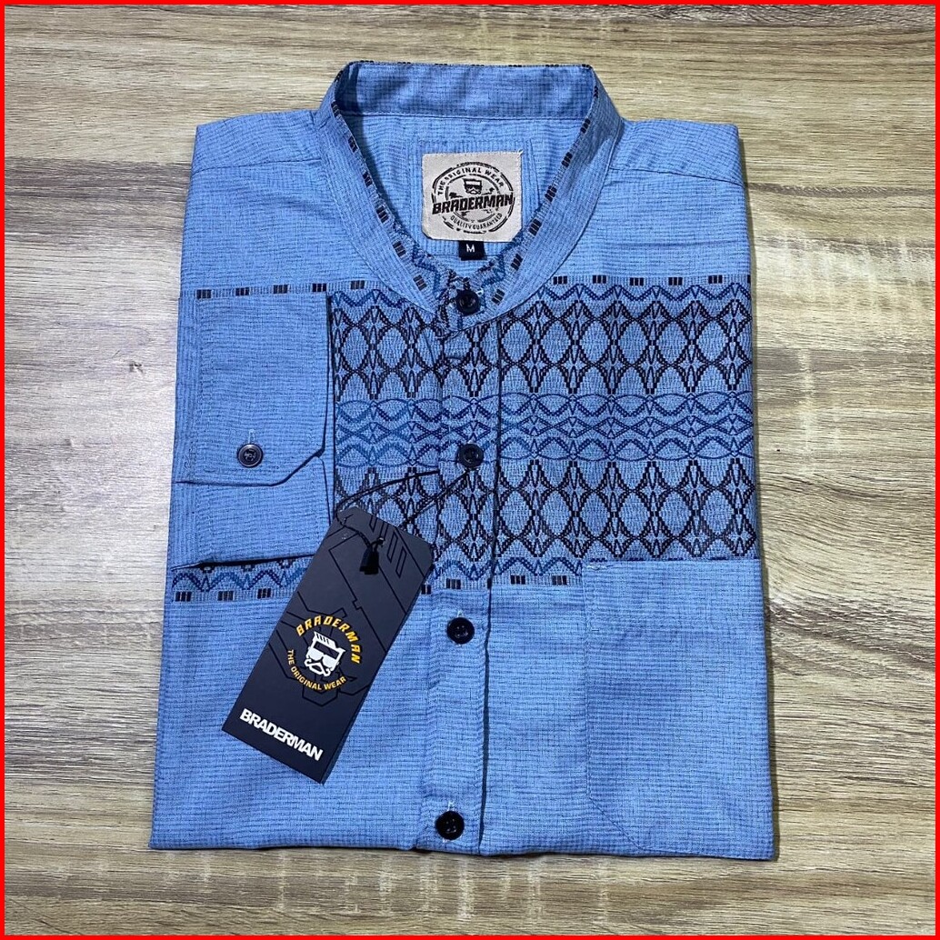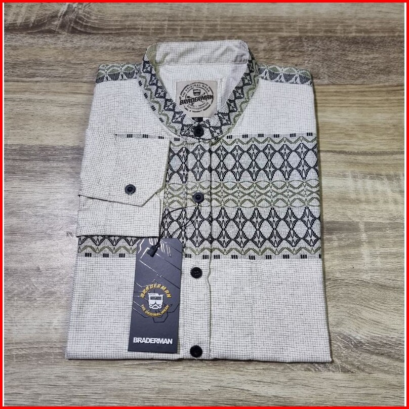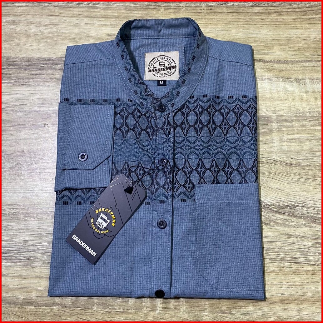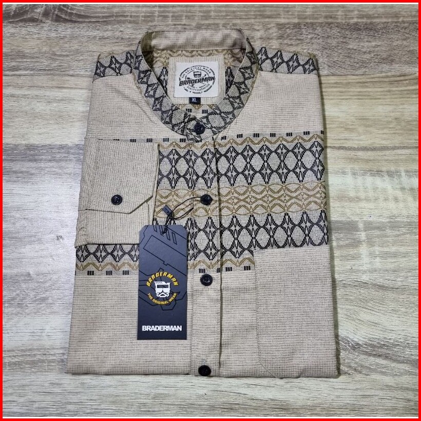 Baju Kemeja Kemko Kerah Sanghai Katun Madinah Motif Songket Pria Dewasa Lengan Panjang Hem Premium