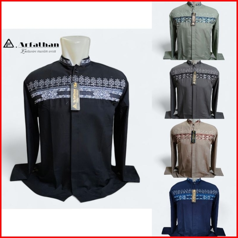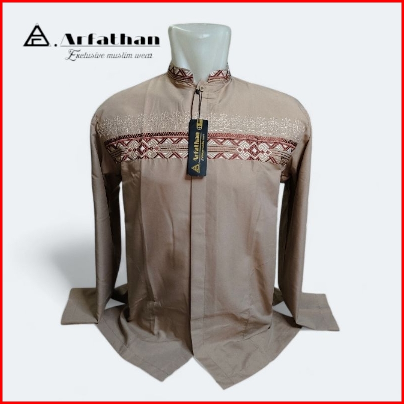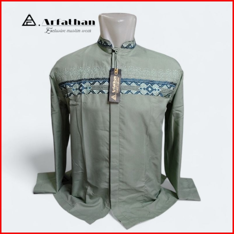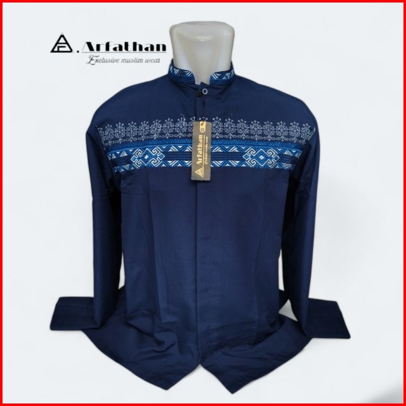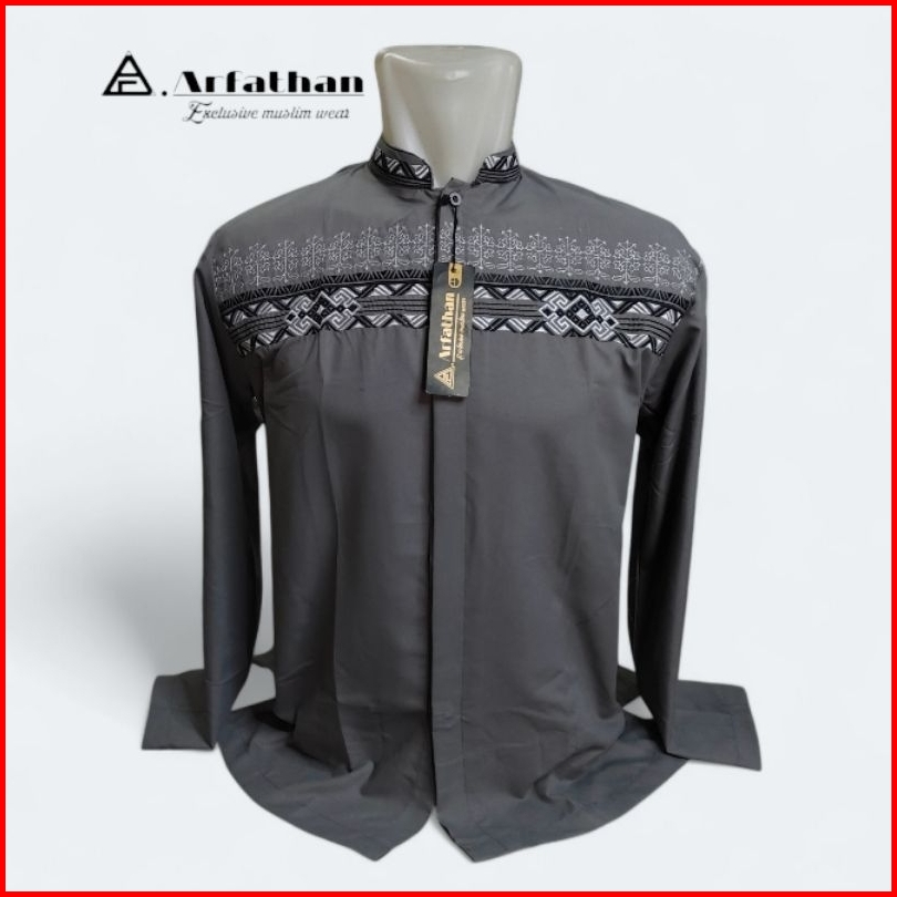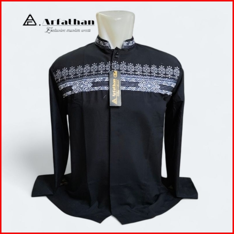 Baju Koko Pria Lengan Panjang Bordir Simpel Terbaru Arfathan Arf-b18