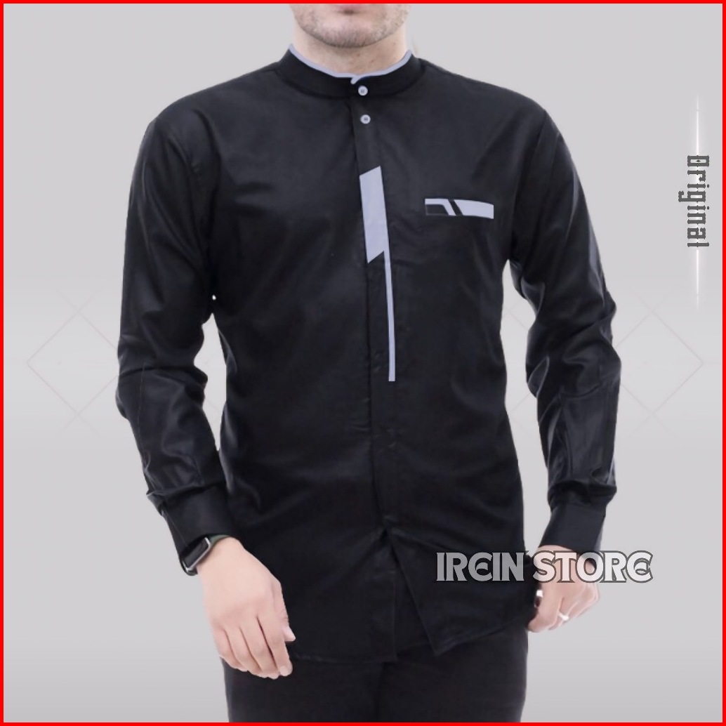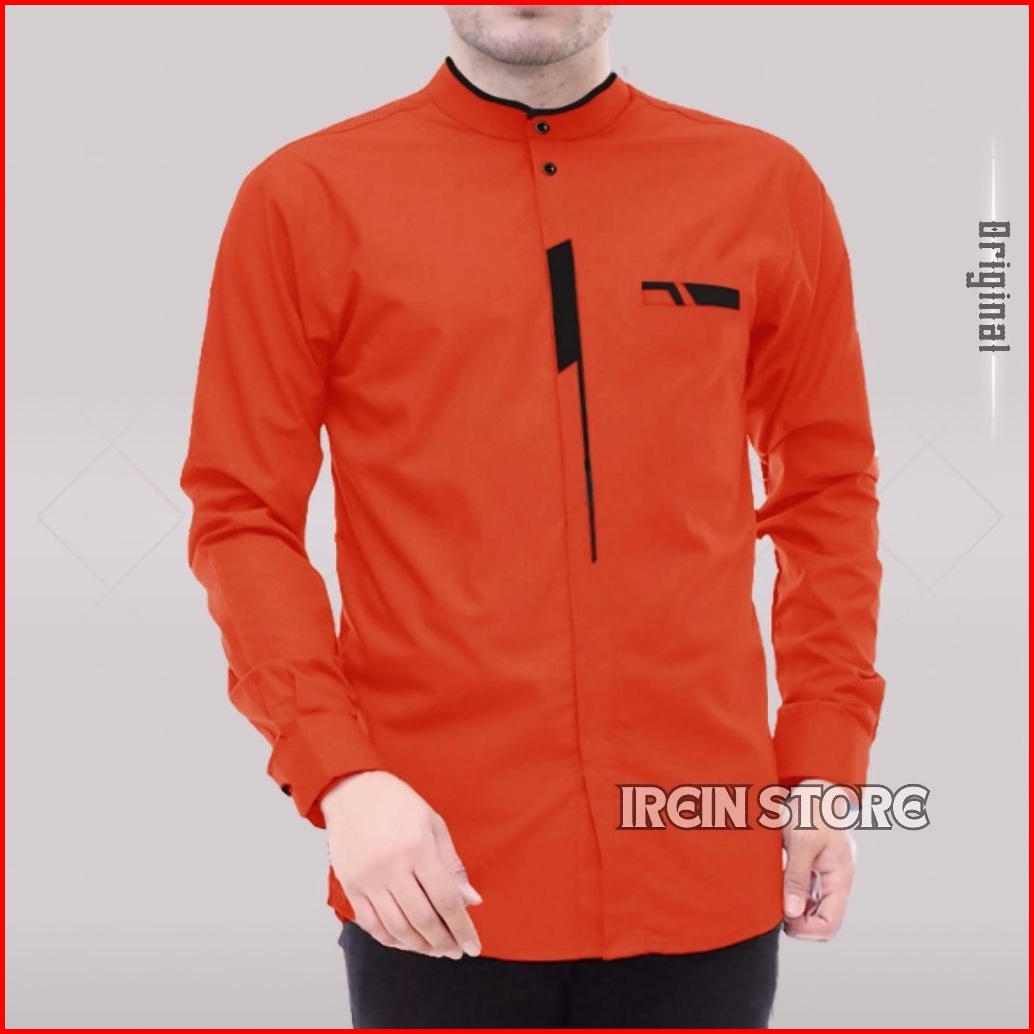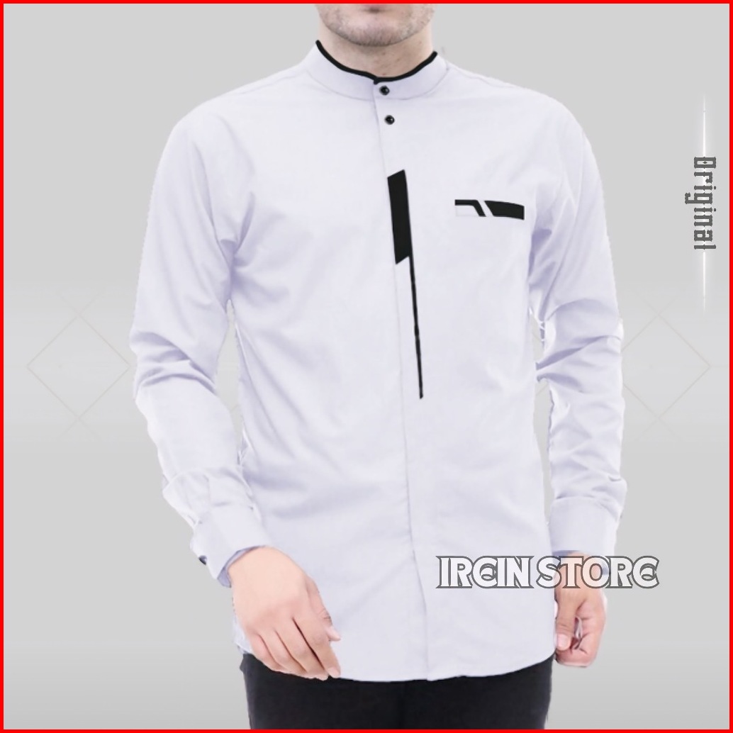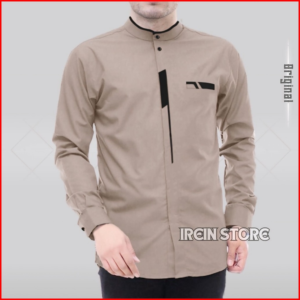 Baju Koko Pria Lengan Panjang Motif Malvin Bahan Katun Toyobo Premium Warna Cokelat Sage Abu Putih Hitam Bata