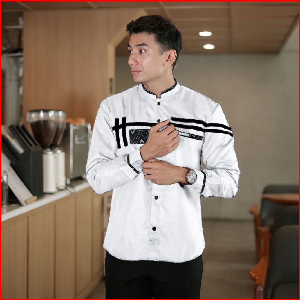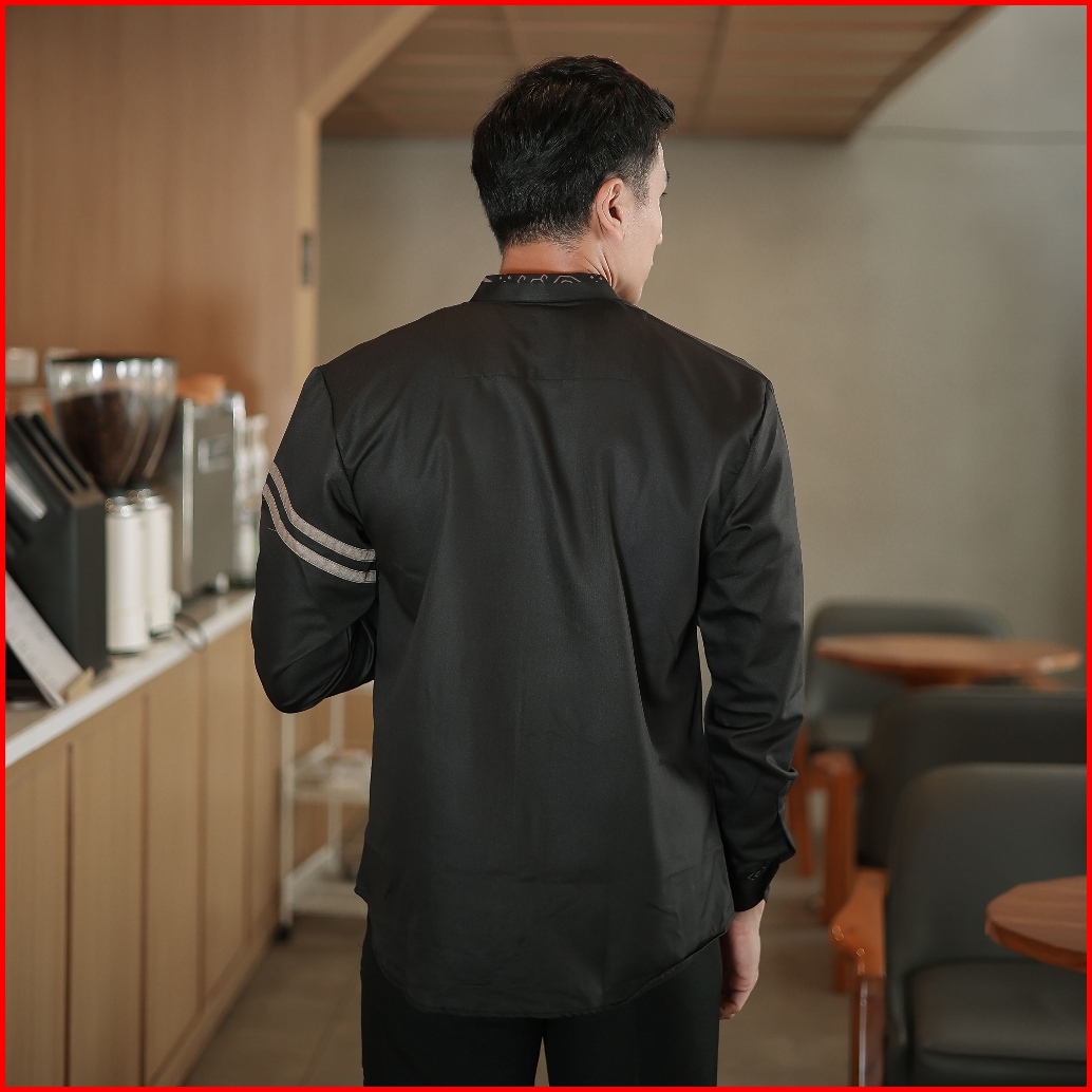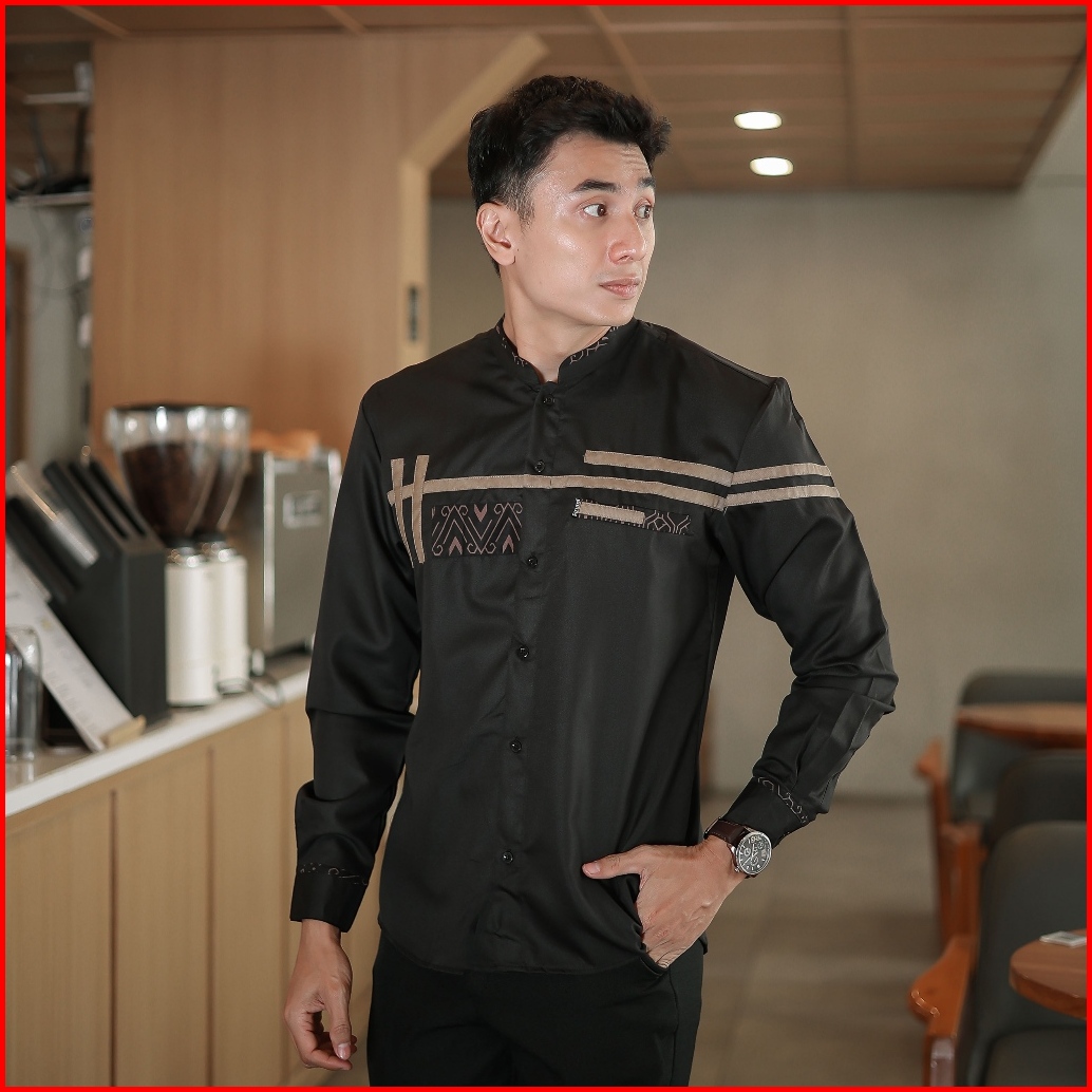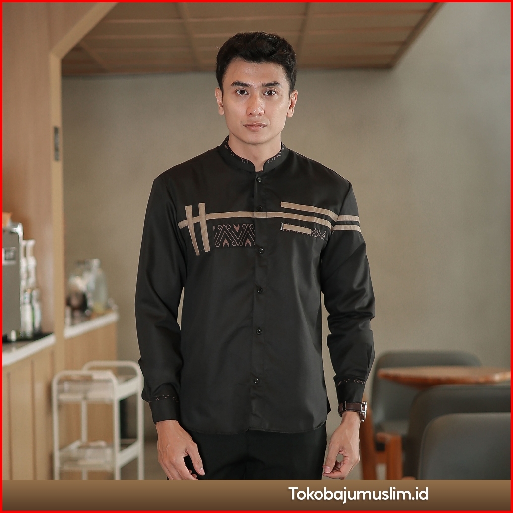Baju Koko Pria Elrumi Lengan Panjang Motif Zolied Kombinasi Batik Warna Hitam