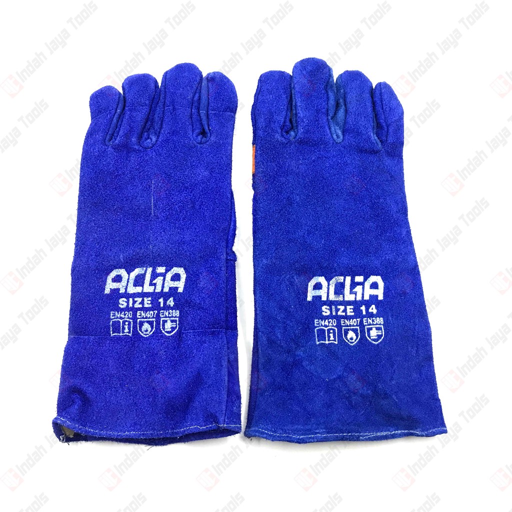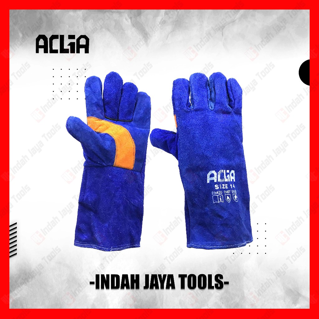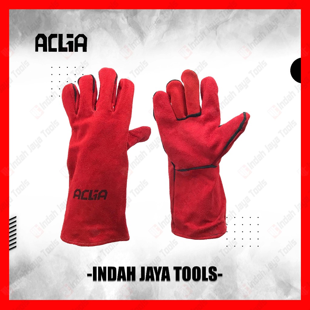 DISCON ACLIA Sarung Tangan Las Kulit Safety Merah Biru Coklat - Alat Keselamatan Welding Gloves Machine