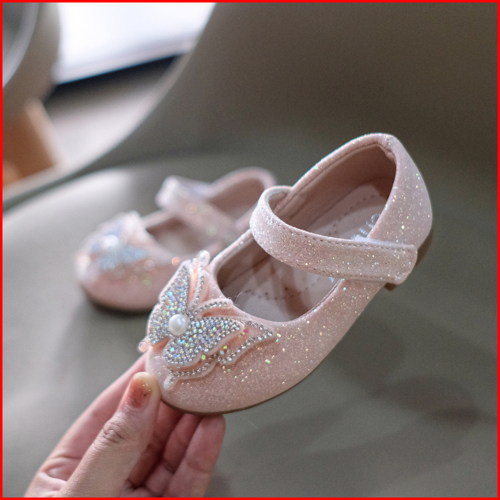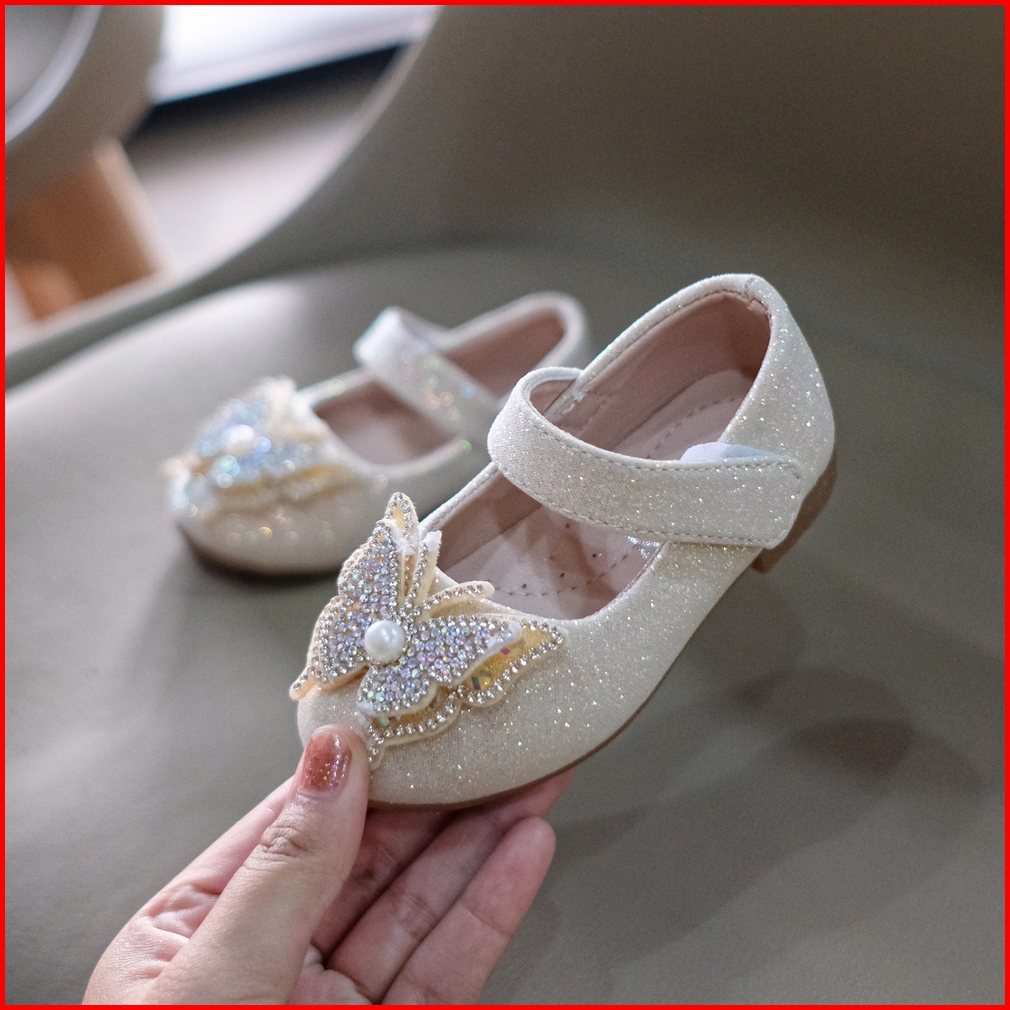 Chubbytoodler Shbc78 Sepatu Flat Anak Perempuan Butterfly Glitter Sepatu Pesta Anak Kupu Kupu Import Size 21-36 Untuk Us