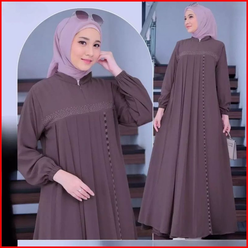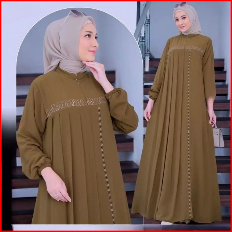 Anggun Dress Ceruty Babydoll Full Furing Mix Payet Swarovski Gamis Pesta Wanita Terbaru
