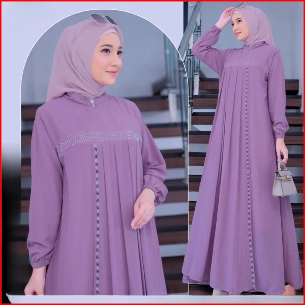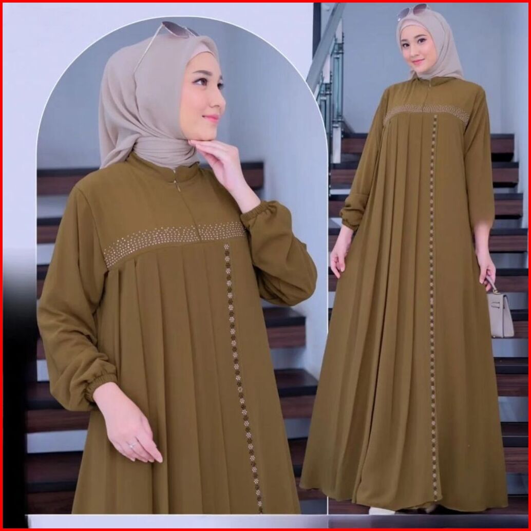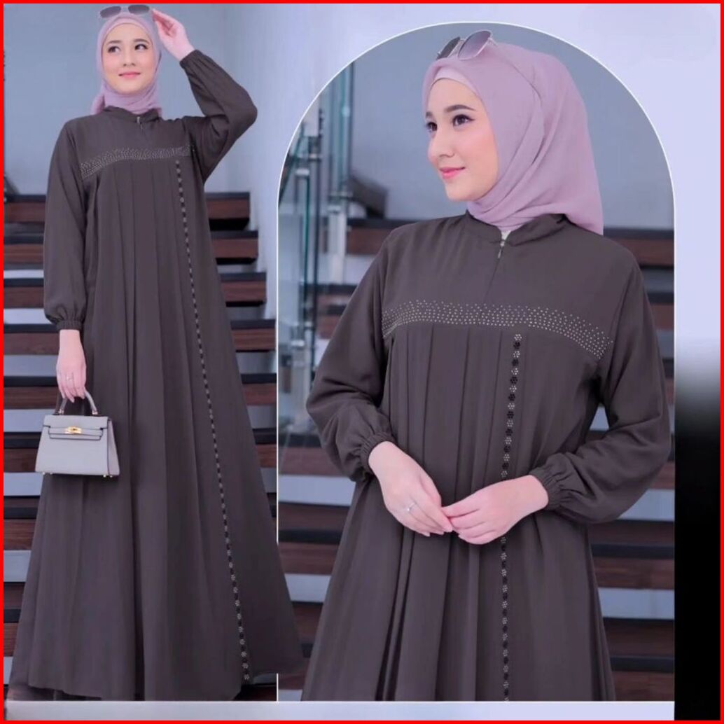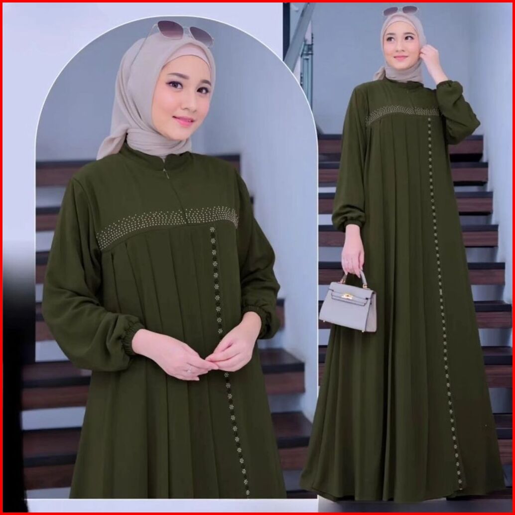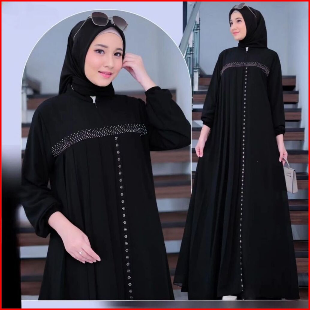 Azzahra Dress Gamis Lebaran 2024 Model Gamis Terbaru Bahan Ceruty Babydoll Mix Payet Swarovski Gom