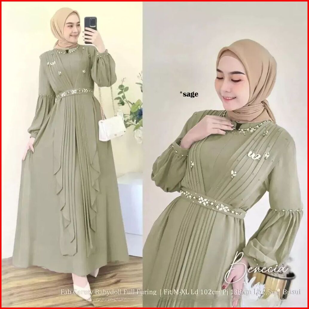 Harus Style Benecia Maxi Dress Kondangan Bahan Ceruty Baydoll Aplikasi Payet Mutiara Elegant