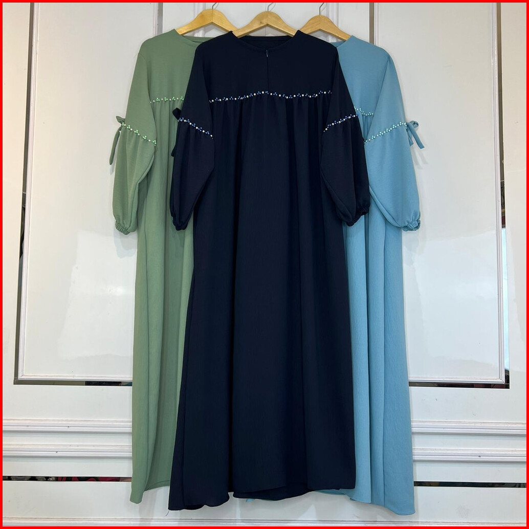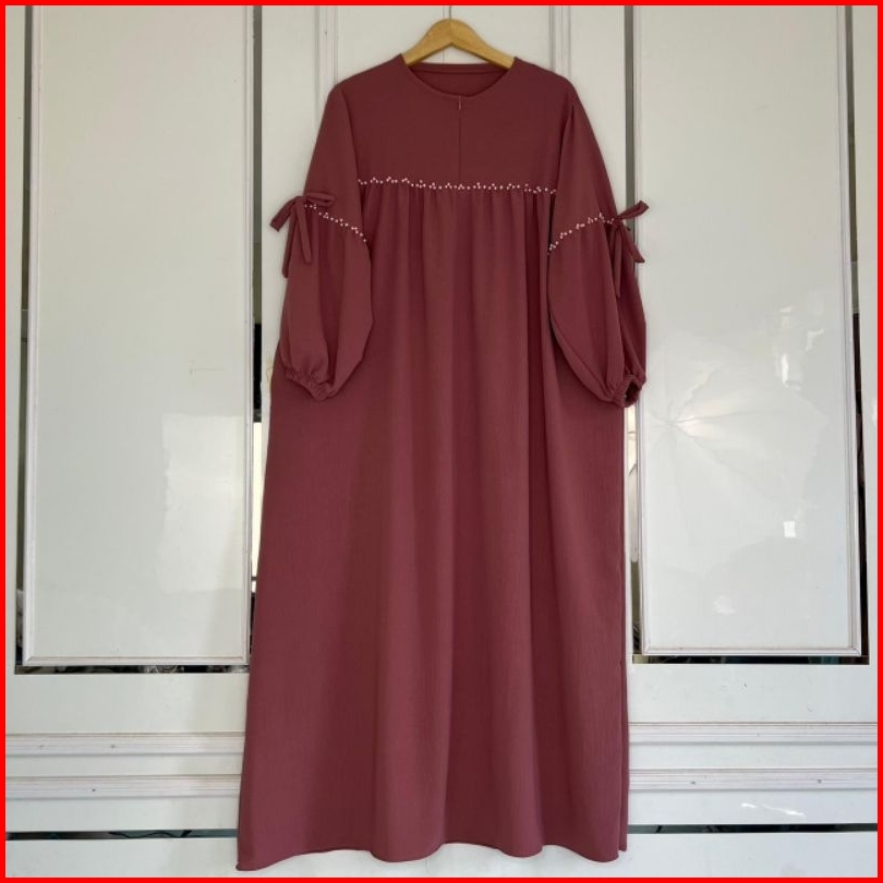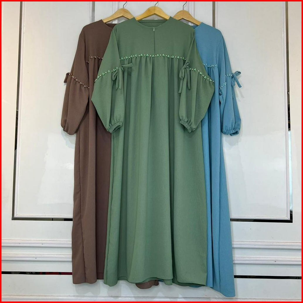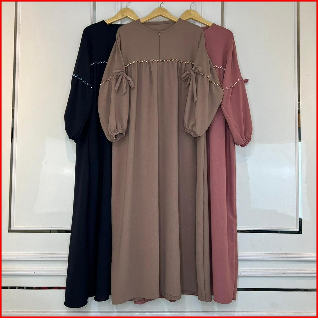 Zinovia Dress Gamis Jumbo Payet Mutiara Crinkle Airflow Premium Polos