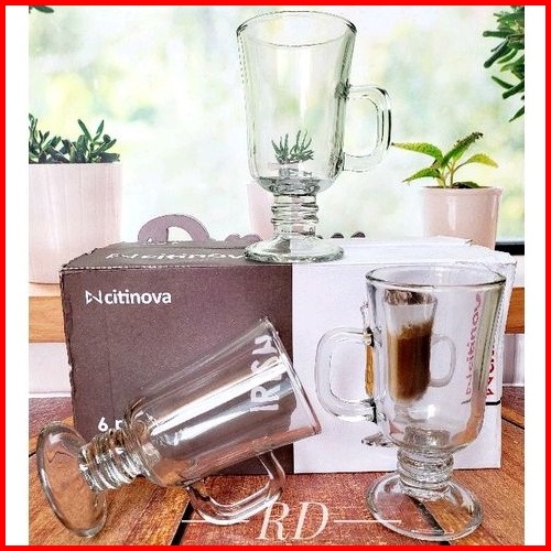 Promo 6.pca Gelas Gagang Unik Bahan Kaca