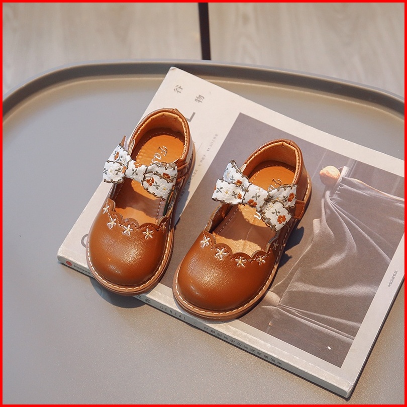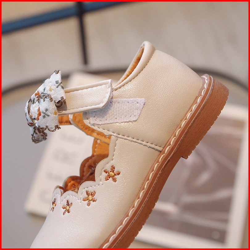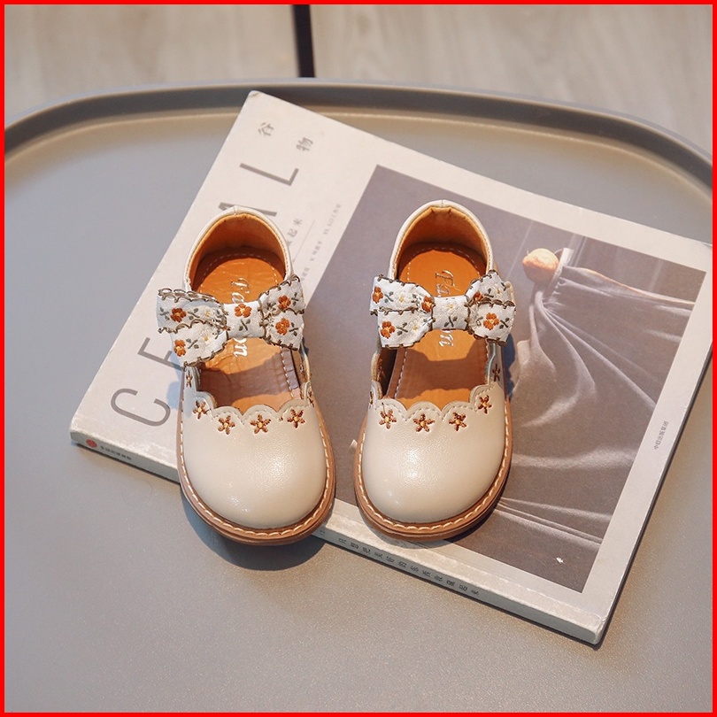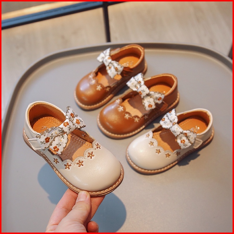 Bunga Ikatan Simpul Sol Lembut Sepatu Flat Kulit Nyaman Gaya Korea Bordir Sepatu Bayi Perempuan Anak Usia 2-8 Tahun