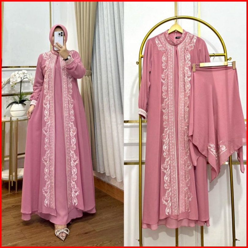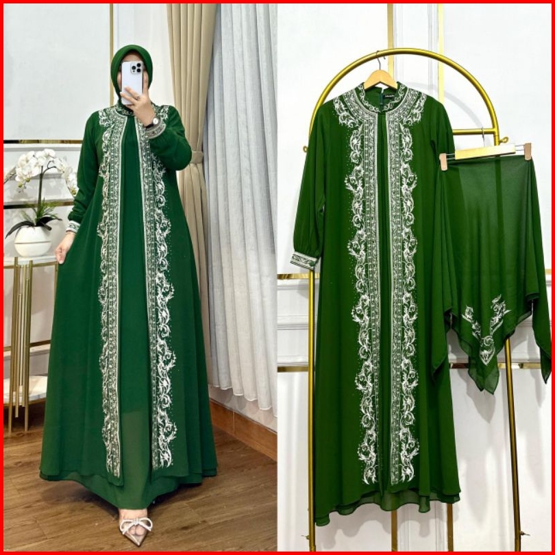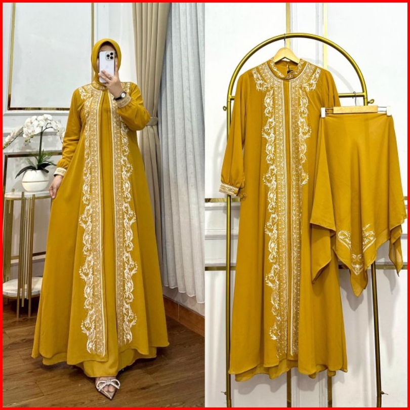 Gamis Bordir Payet Premium Gamis Set Hijab Seruti Babydoll Gamis Kekinian Terbaru