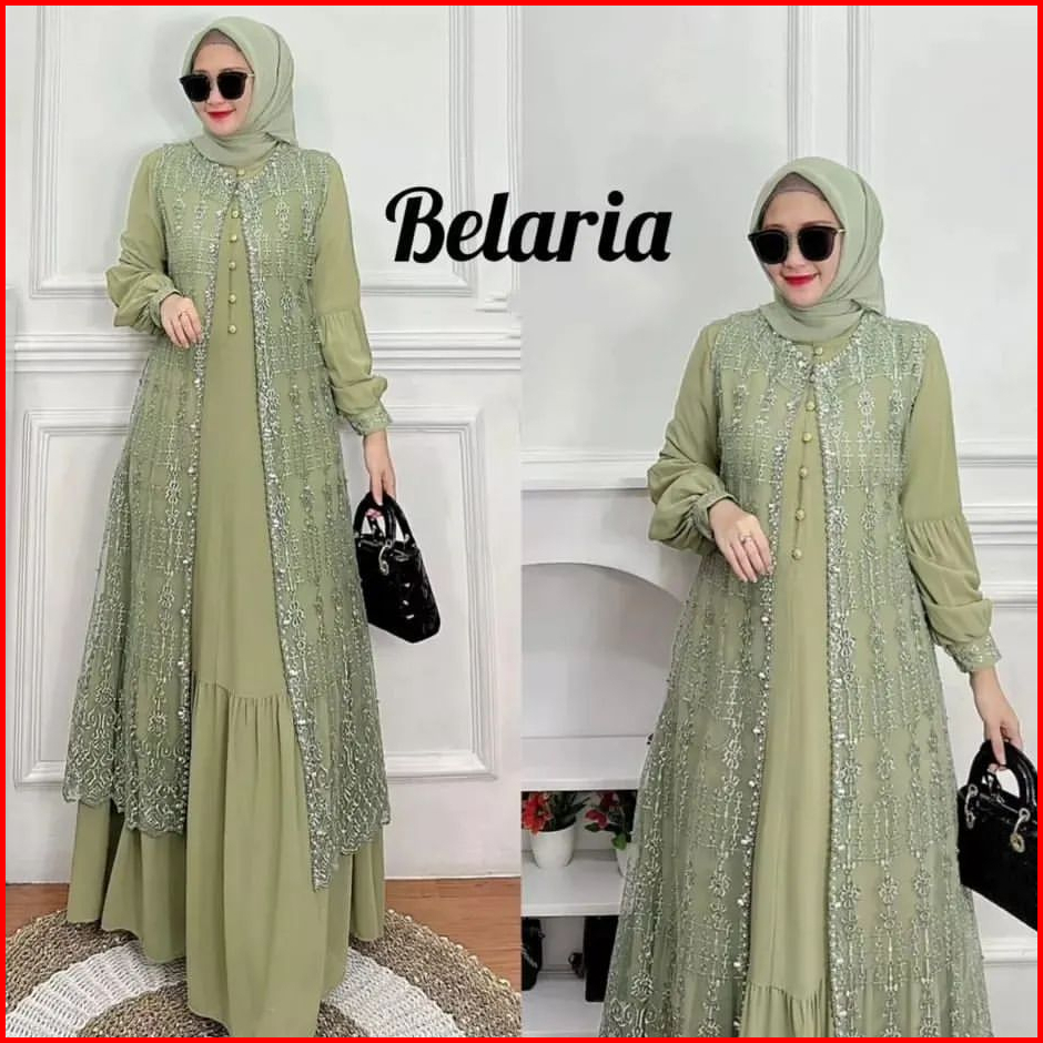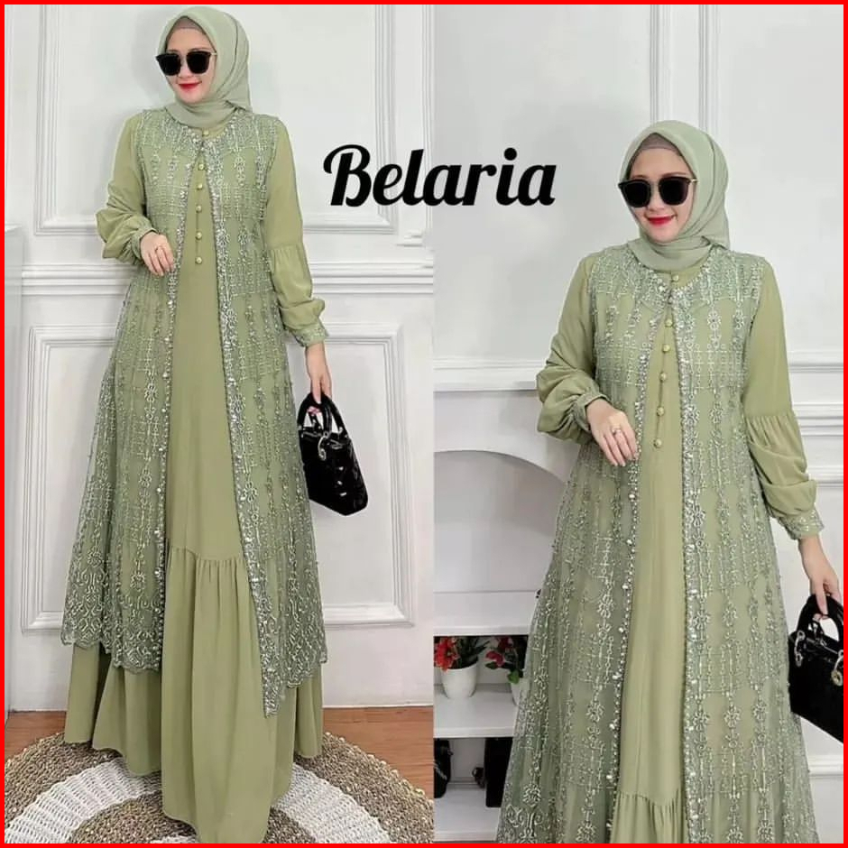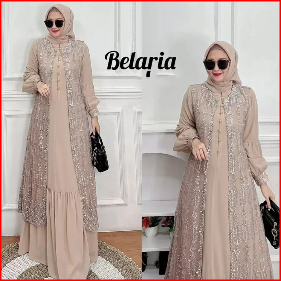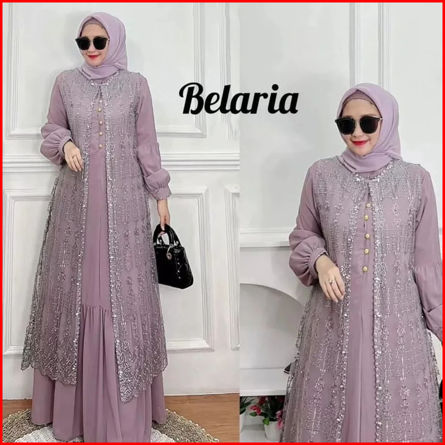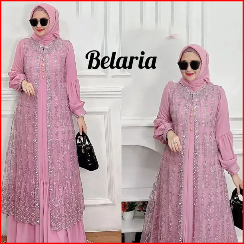 Gamis Maxy Brokat Terbaru Payet Mutiara Size M L Xl Xxl Bellaria Dress Pesta Kondangan Mewah Elegan