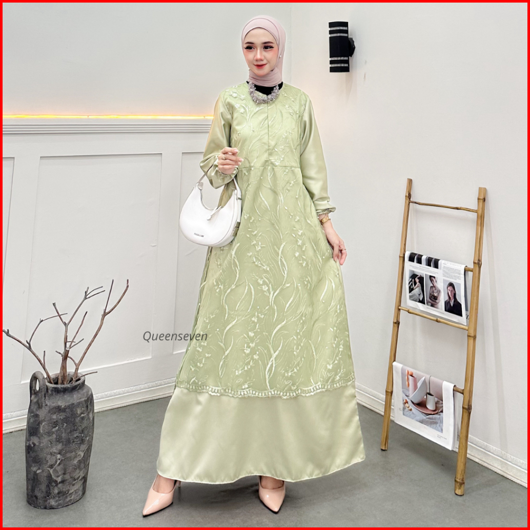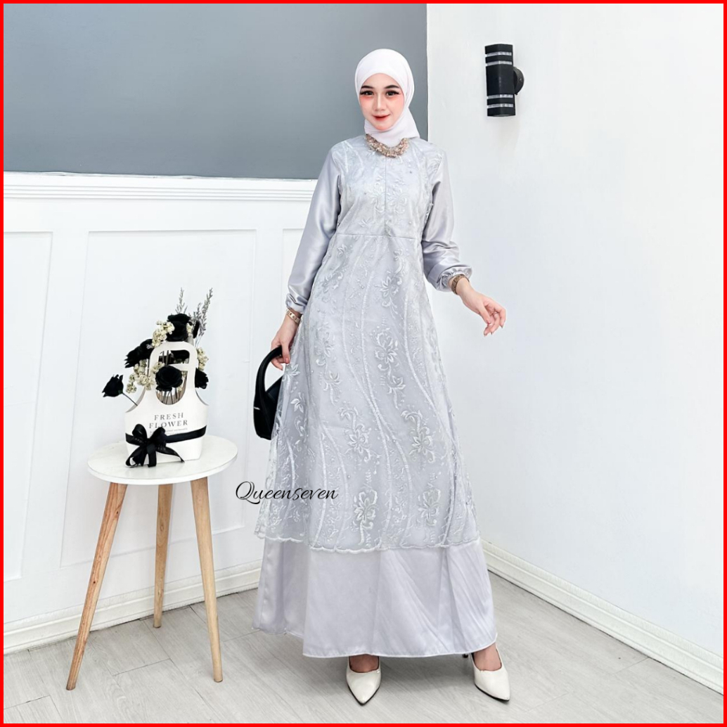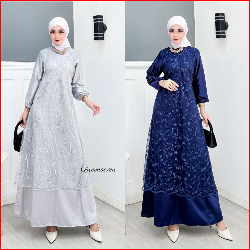 Gamis Wanita Terbaru Almira Dress Busui Brukat Mutiara Tile Gamis Pesta Mewah Elegan Kekinian