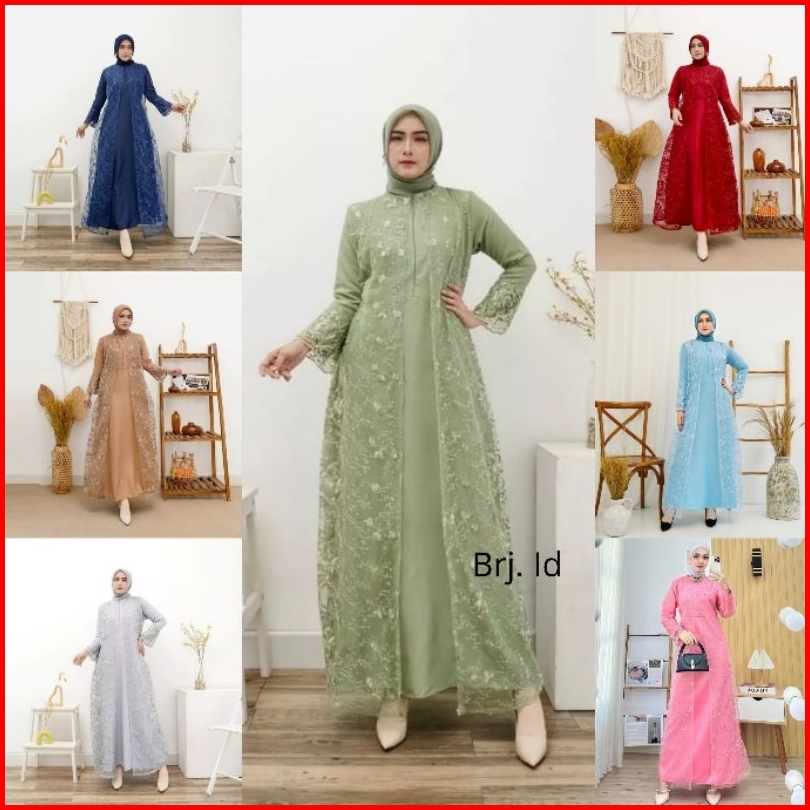 Gamis Hena Busui Brokat Mutiara Tile Bordir Size M L Xl Xxl Jumbo Gamis Pesta Terbaru