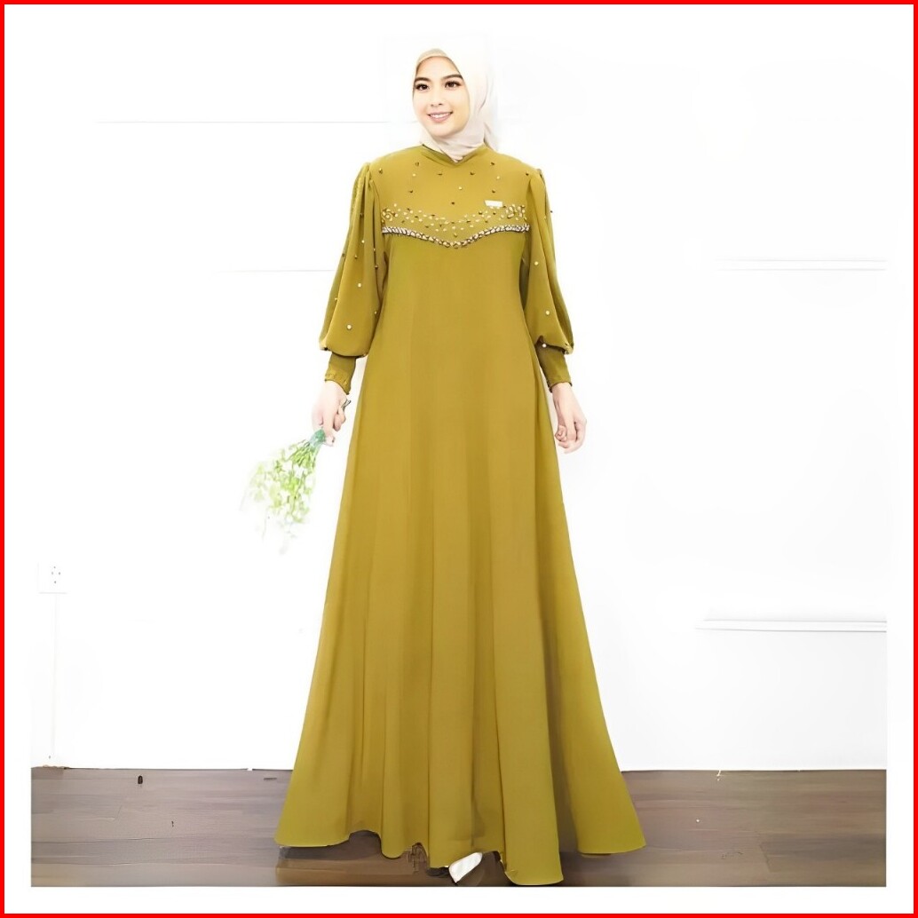 Vioni Dress Gamis Crinkle Premium Gamis Lebaran Terbaru Dress Payet Mutiara Dress Formal Casual