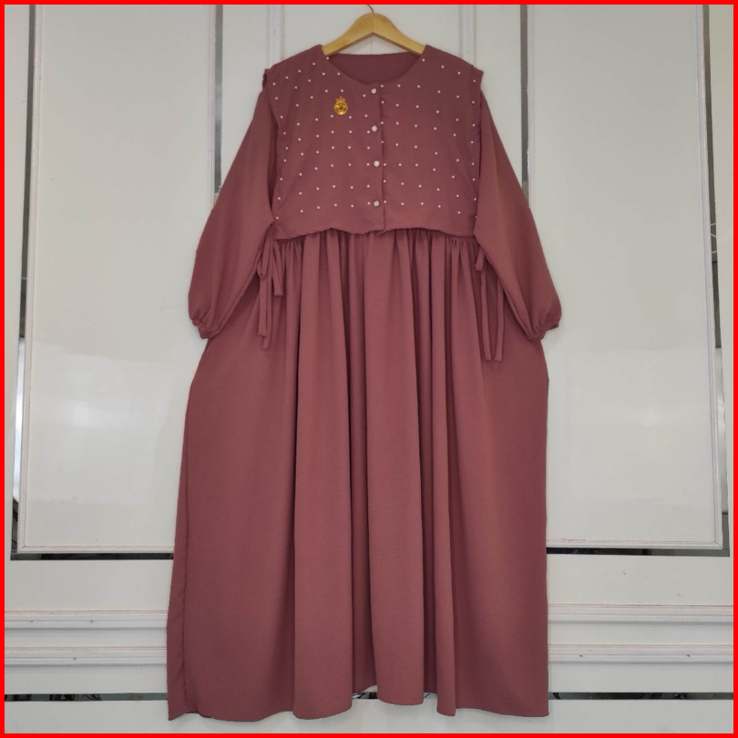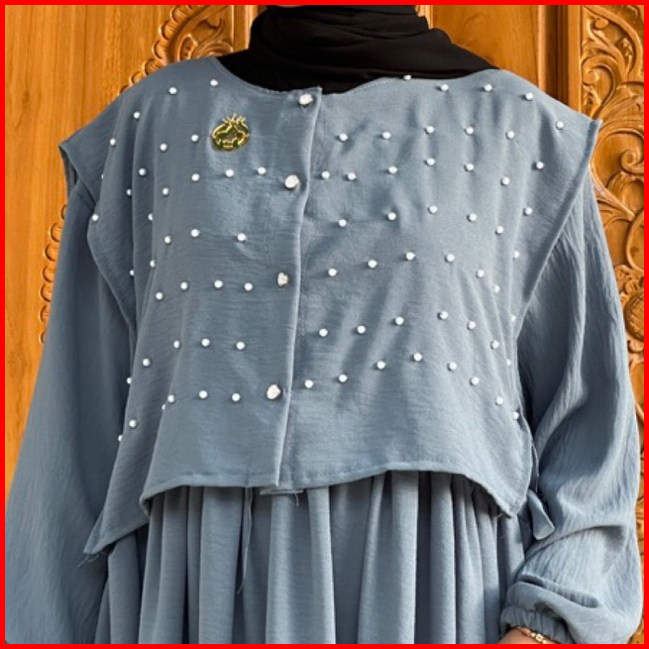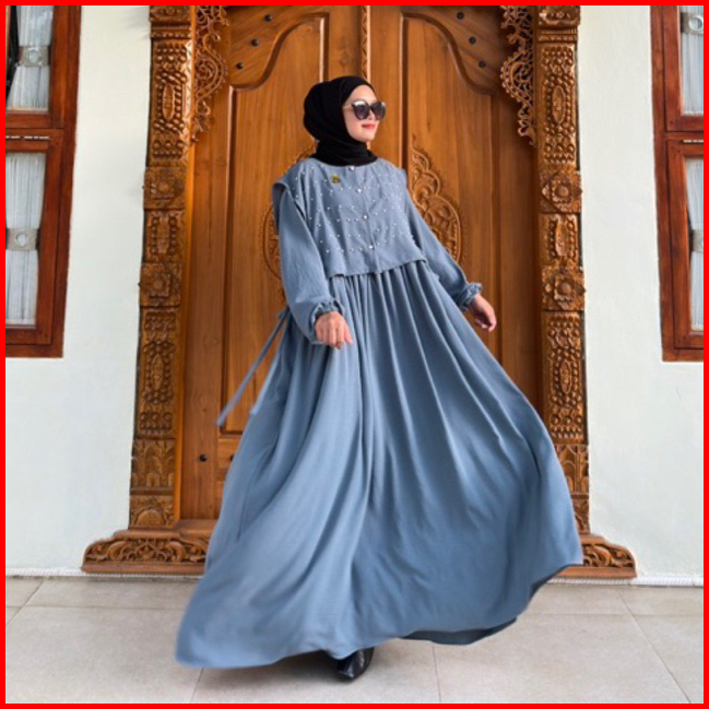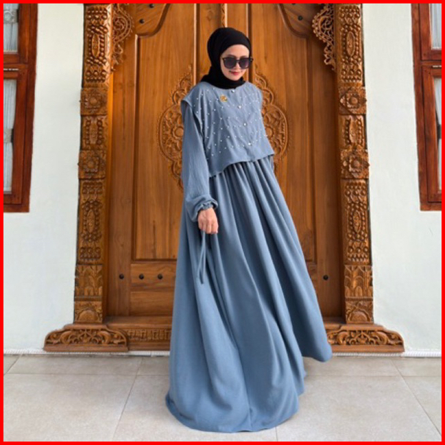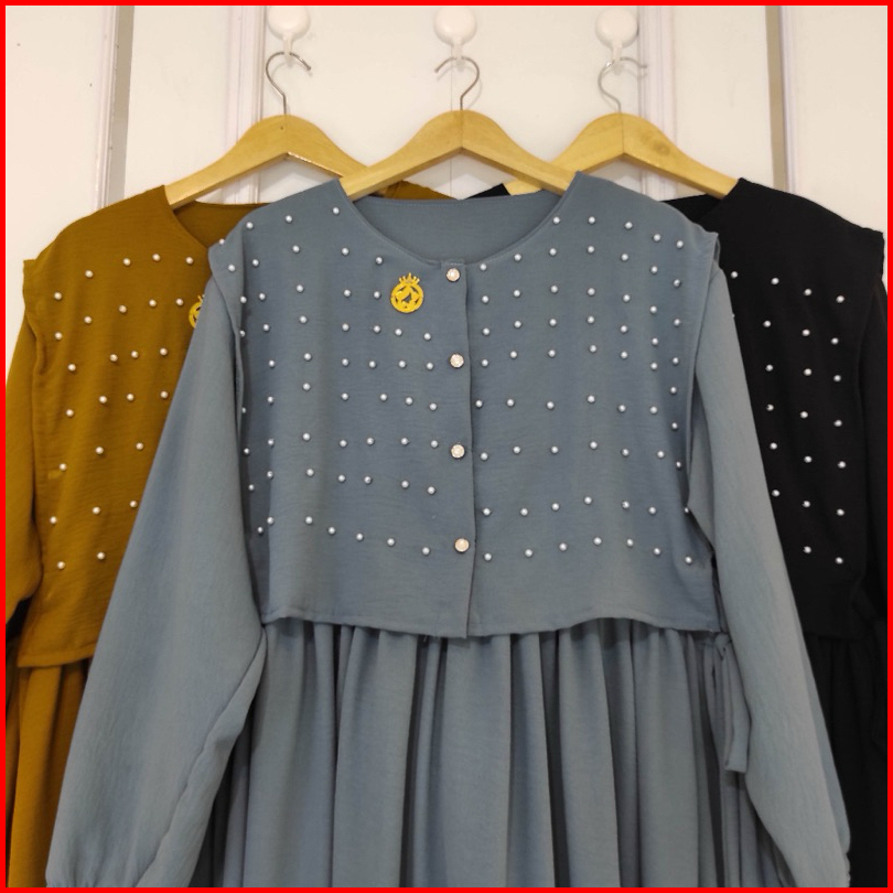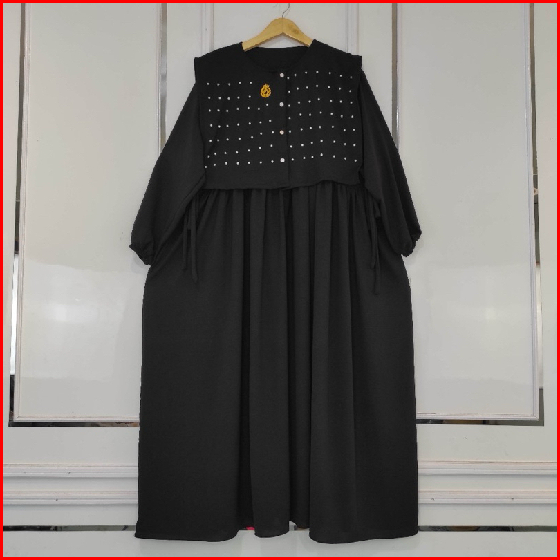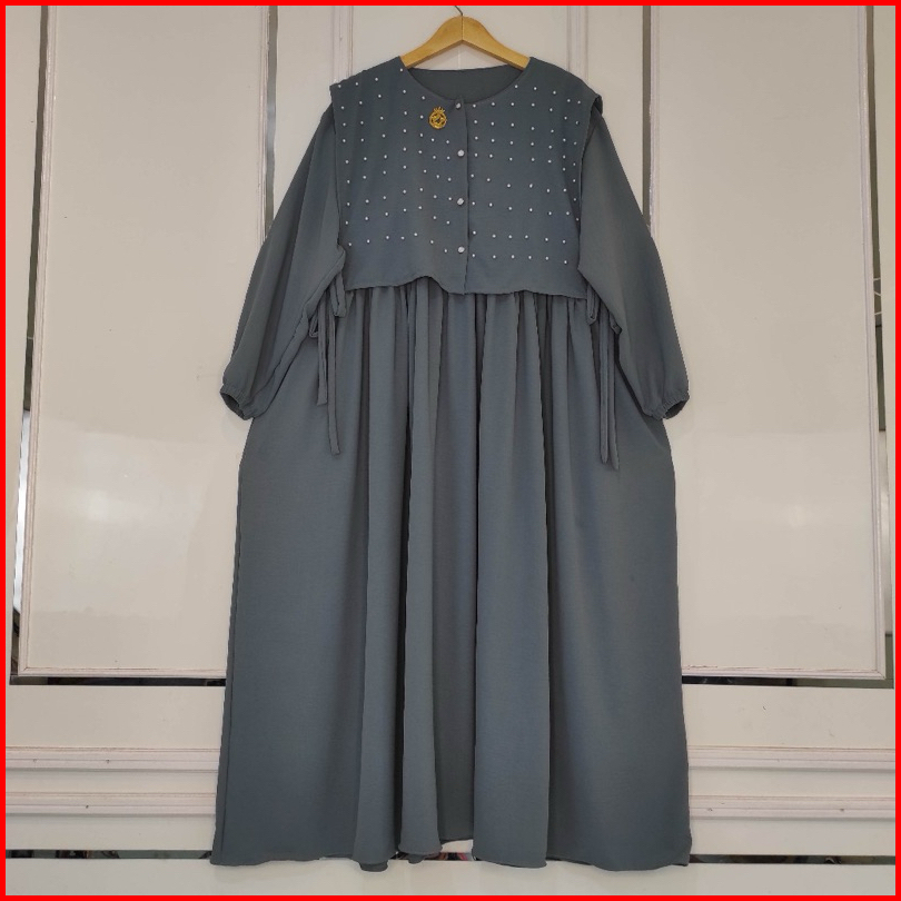 Belvina Dress - Gamis Wanita Jumbo Payet Mutiara Ld 140cm Crinkle Airflow Premium