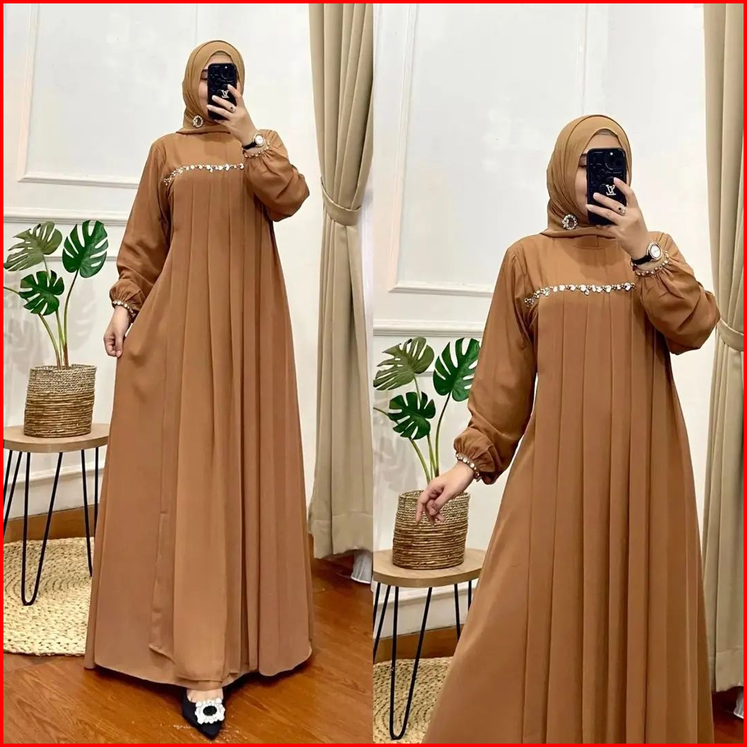 Gamis Kondangan Elegan Gamis Arayya Maxi Gamis Ceruty Babydoll Premium Mix Mutiara Payet Dress Gamis Seragam Dress Konda