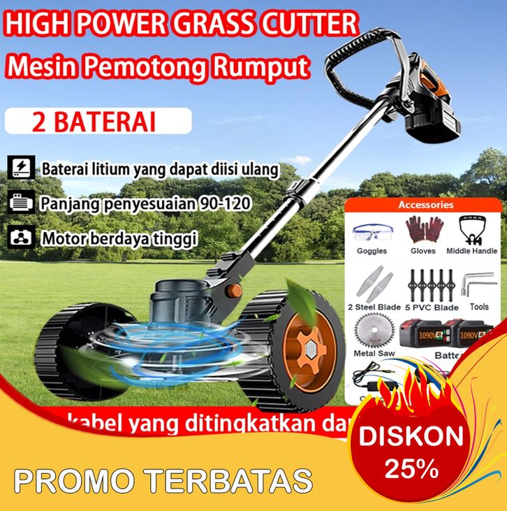 KYLEPLUS Mesin pemotong rumput baterai 1090V/588V /12V Mesin potong rumput baterai dg roda Mesin pemotong rumput listrik