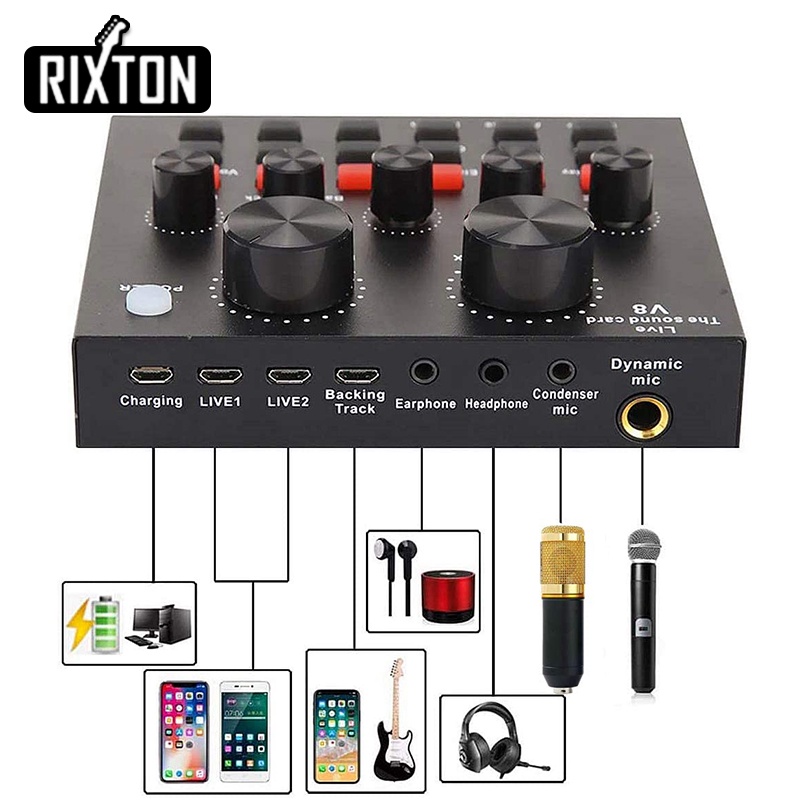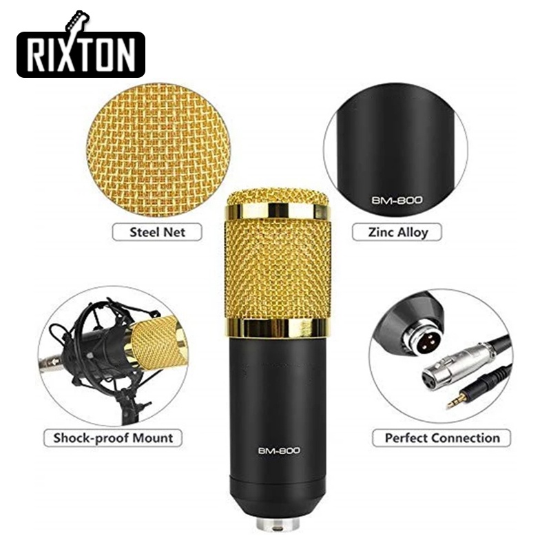 BM800 ORIGINA Paket Komplit Mic Condenser BM 800 + Stand + V8 Soundcard+ Free Audio Splitter recording Microphone
