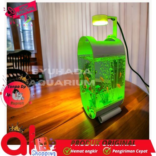 READY- PROMO AQUARIUM MINI PLUS POMPA AERATOR GLEMBUNG BATU BUNGA & LAMPU LED - UNGU