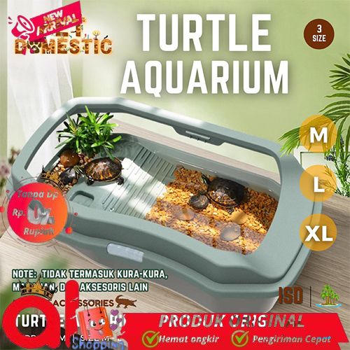 READY- TURTLE TANK COMPLETE FILTER /AQUARIUM KURA/ KANDANG KURA KURA KOMPLIT - T-HITAM, M (35X21X12CM)