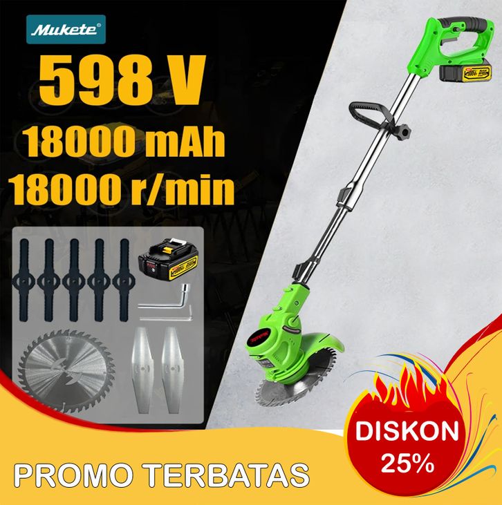 Mukete 598V Mesin pemotong rumput alat pemotong rumput mesin babat rumput baterai Mesin potong rumput baterai Pemotong R