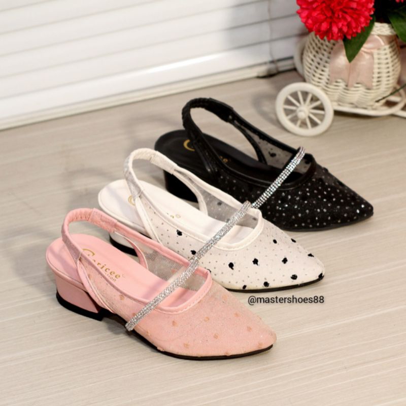 MASTER CA11 - [NEW COLLECTION] Sandal pesta anak perempuan brukat permata terbaru hak tahu 3 cm/sendal selop termurah