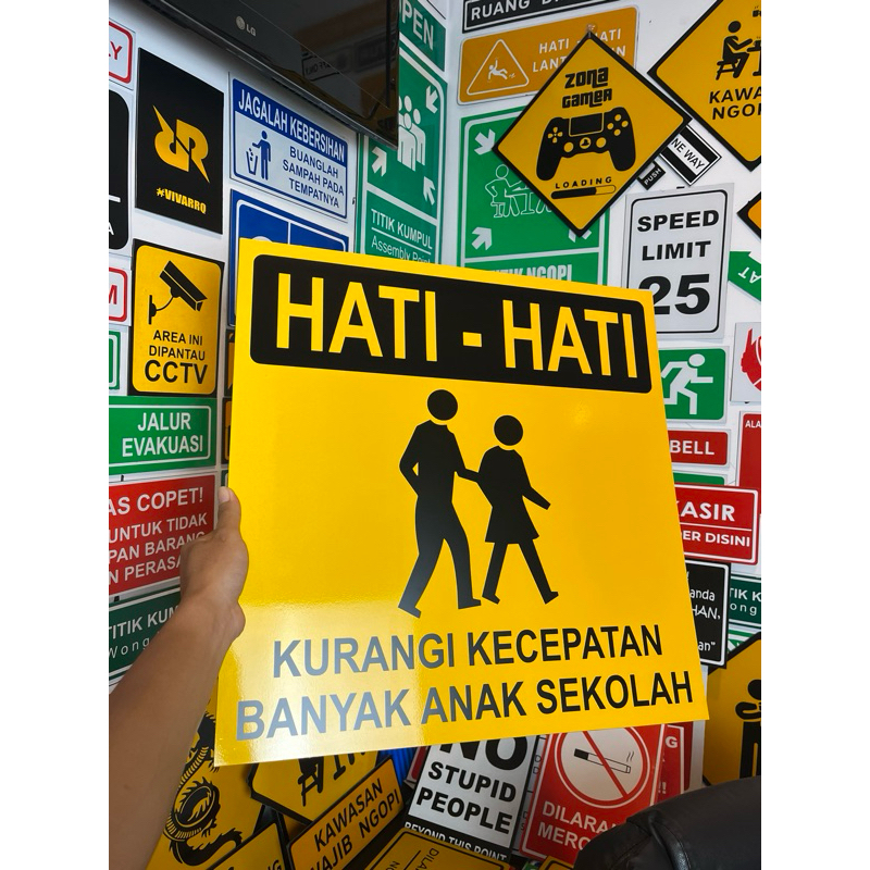 SIGN HATI-HATI KURANGI KECEPATAN BANYAK ANAK SEKOLAH 50 X 50 CM | ARAH TANDA PETUNJUK RAMBU