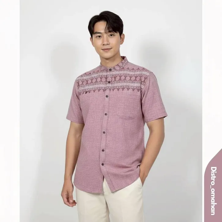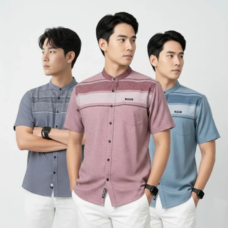 KOKO PRIA DEWASA LENGAN PENDEK SHANGHAI BAHAN KATUN MADINAH MOTIF SONGKET BAJU KEMEJA PRIA LEBARAN 2026