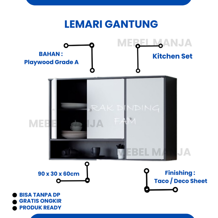 KITCHEN SET ATAS 3 PINTU LEMARI DAPUR MINIMALIS LEMARI GANTUNG RAK DAPUR MINIMALIS MURAH LEMARI PIRING GRATIS ONGKIR