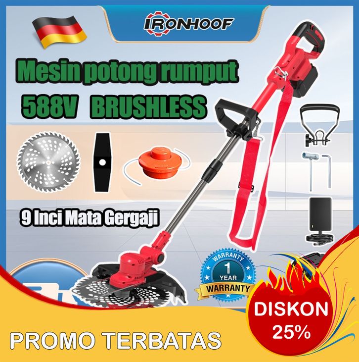588V Mesin potong rumput 9 inci cordless mesin pemotong rumput high power alat pemotong rumput