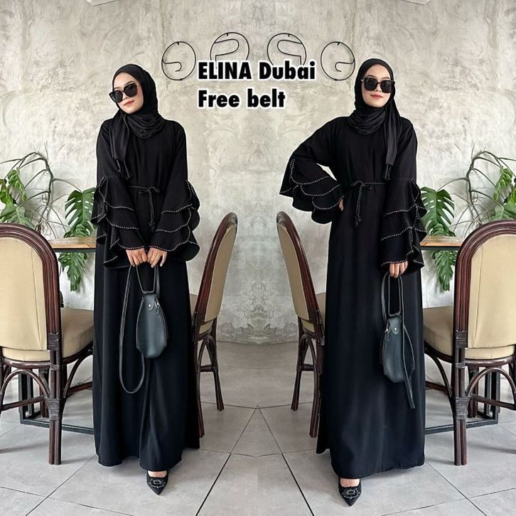 Abaya Gamis Hitam Maxy Dress Fashion Muslim Busana Wanita Turkey Murah Dubai Elina Gamis Lebaran Wanita Terbaru