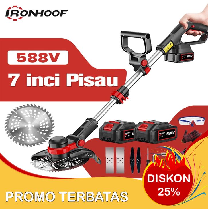 IRONHOOF 588V Mesin Potong Rumput Pemotong Rumput Listrik Pemangkas Rumput dengan Baterai Li-ion