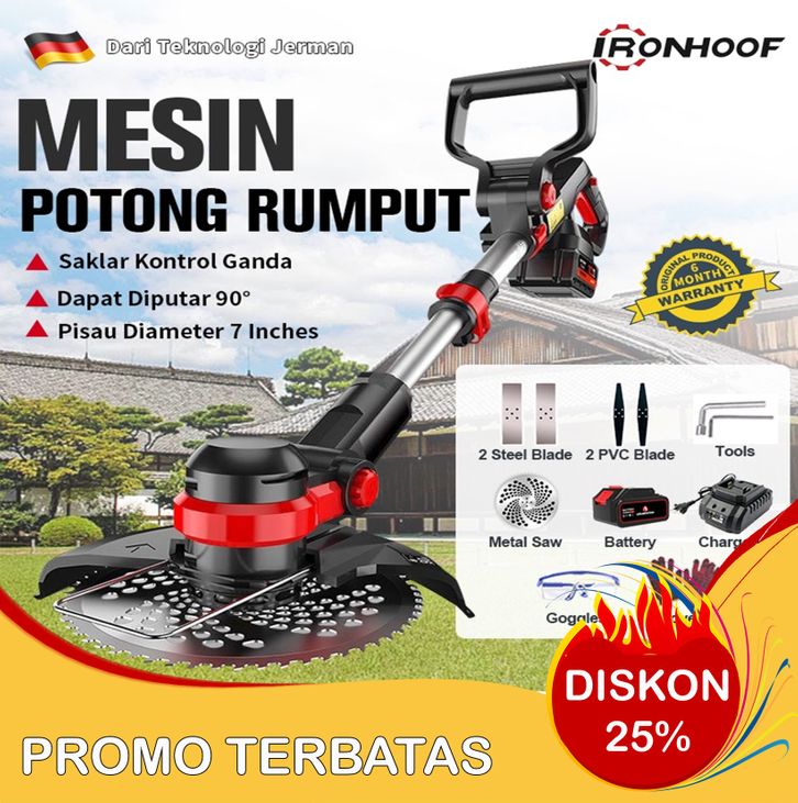 IRONHOOF Mesin Potong Rumput 24V/36V/48V Mesin Pemotong Rumput Mesin Potong Rumput Baterai Pemotong Rumput