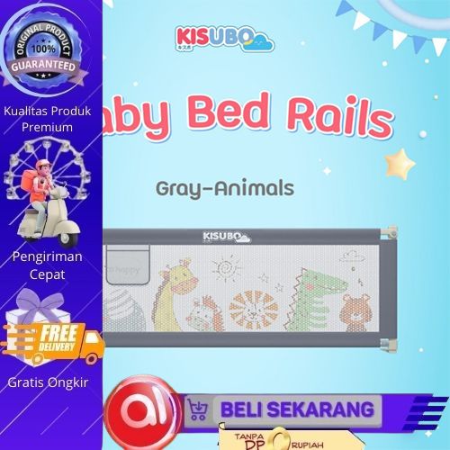 TERLARIS KISUBO BABY BED RAILS SAFE PAGAR PENGAMAN KASUR - GRAY-ANIMALS, 180CM