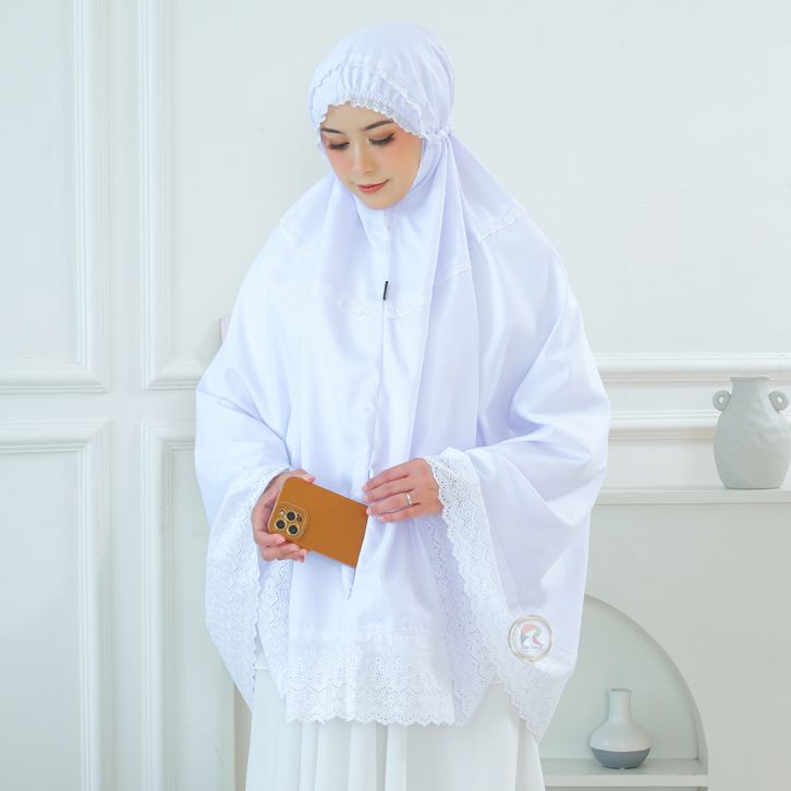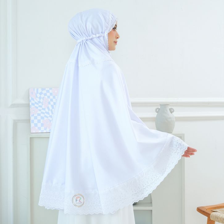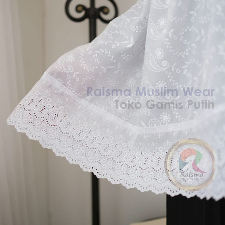 Raisma - Bergo Putih Bahan Katun Jepang Motif Bordir Cantik Dan Adem 002 Perlengkapan Umroh Wanita
