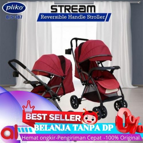 CICILAN/ STROLLER PLIKO STREAM 387/KERETA DORONGAN BAYI REVERSIBLE HANDLE - BLACK, BUBBLE WRAP