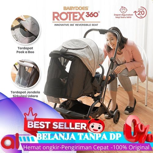 CICILAN/ STROLLER KERETA DORONG BAYI REVERSIBLE SEAT BABYDOES ROTEX 360 DERAJAT - HITAM, HANYA STROLLER