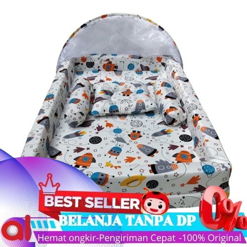 CICILAN/ KASUR BAYI KELAMBU BANTAL GULING BENTUK KOLAM SATU SET - BINTANG NAVY