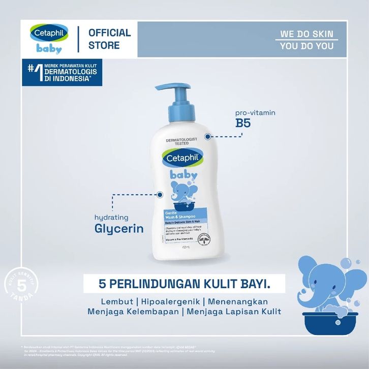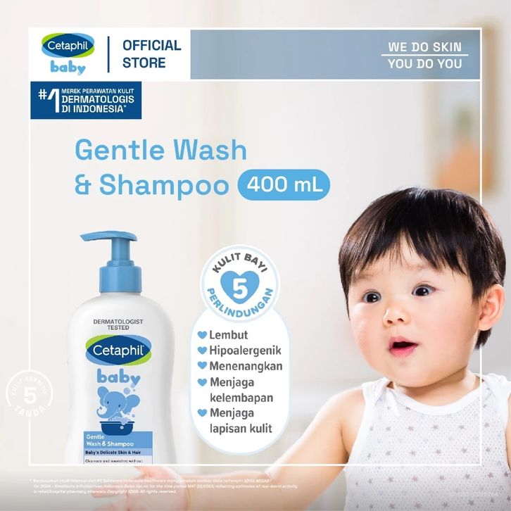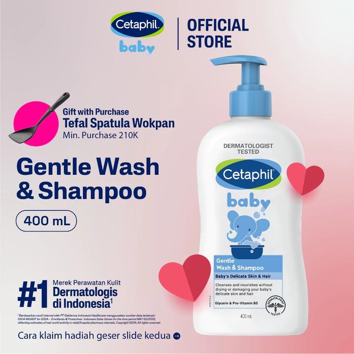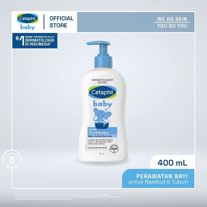 Cetaphil Baby Gentle Wash & Shampoo 400ml dengan Glycerin dan Panthenol Sabun Mandi dan Shampo untuk Perawatan Kulit Bay