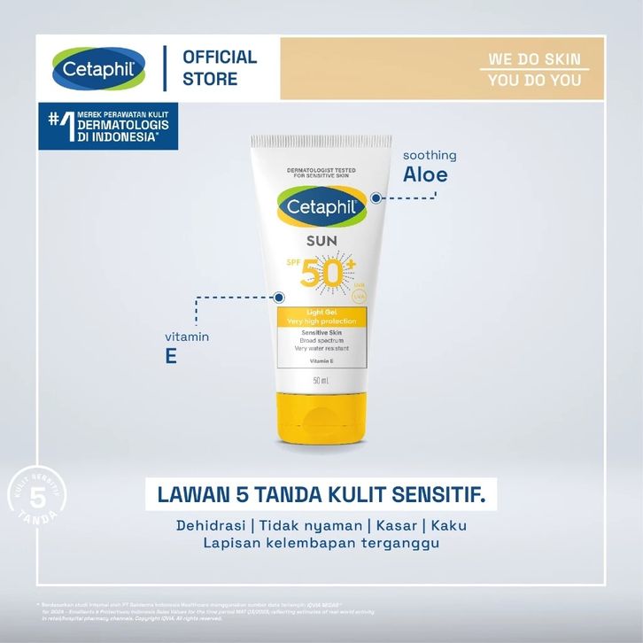 Cetaphil Hybrid Sunscreen SPF50+ Light Gel 50ml untuk kulit sensitif dengan Titanium Dioxide