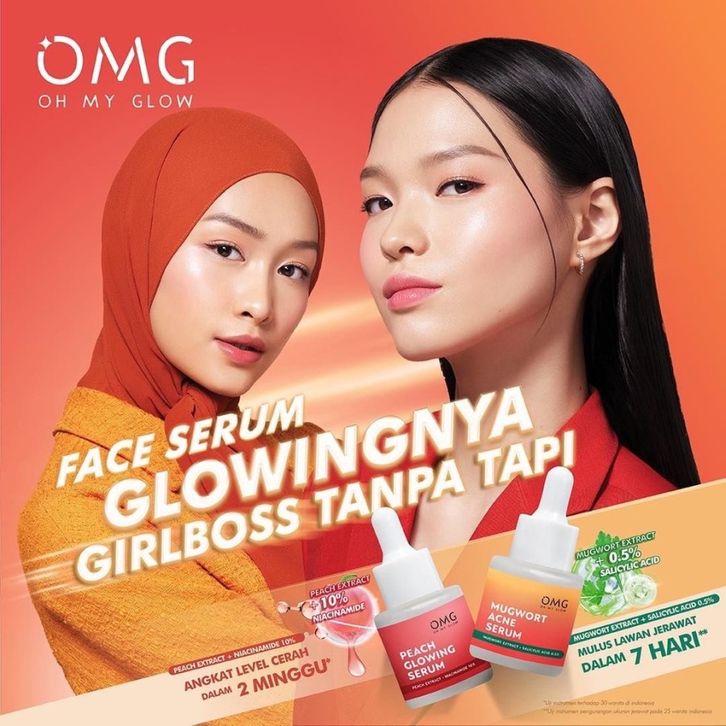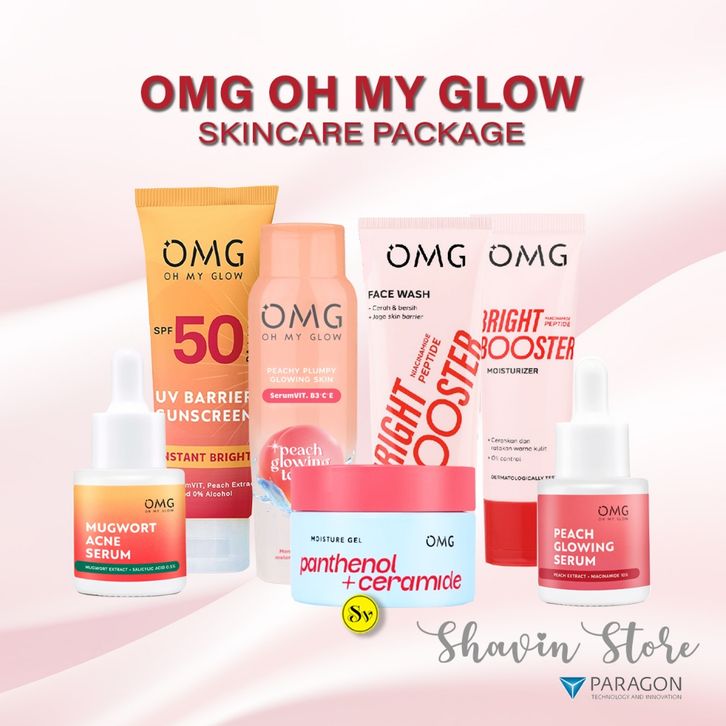 Paket Skincare OMG Oh My Glow Bright Booster Peach Glowing Skincare Face Wash Moisturizing Toner Mugwort Acne Serum